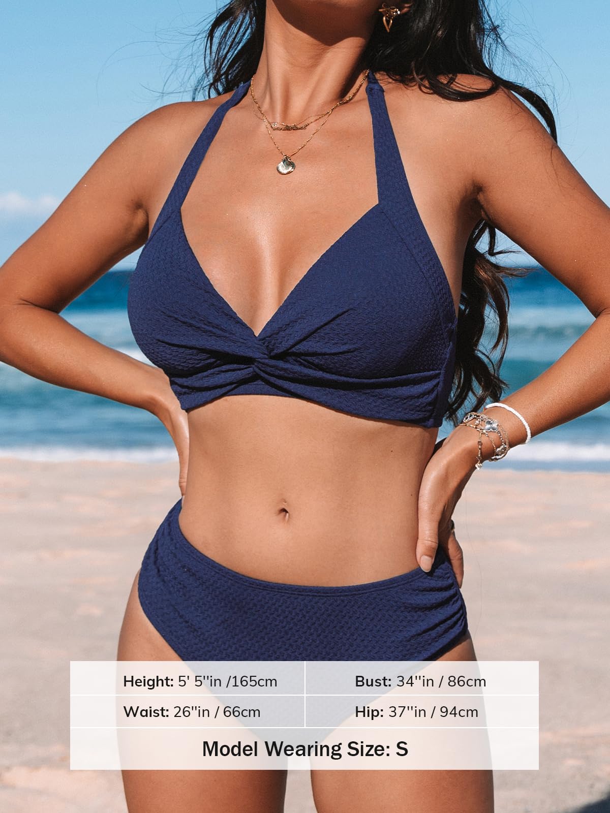 • Design: Choose this halter back hook bikini sets for your next tropical escape. This trendy two piece swimsuit textured fabric and twist on front design ensures you're always ready for fun in the sun.