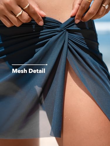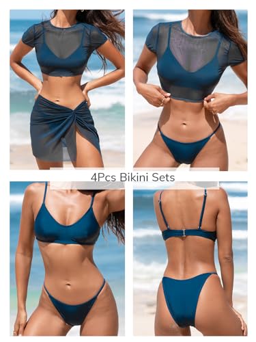 CUPSHE Women's Bikini Sets Wrap Skirt Sarong Swimsuit Low Rise Shrot Sleeve Back Hook Thong Cheeky,M Teal Blue