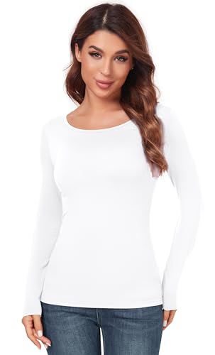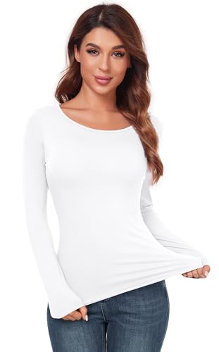 Details: AUHEGN Women's Scoop Neck Tops Long Sleeve Slim Fit T Shirt Thermal Blouse Basic Layer Shirts Size Chart Small: Bust: 33.0"--- Length: 24.5"--- Sleeve Length: 23.0" Medium: Bust: 35.5"--- Length:25.0"--- Sleeve Length: 23.5" Large: Bust: 38.0"--- Length: 25.5"--- Sleeve Length: 24.0" X-Large: Bust: 40.5"--- Length: 26.0"--- Sleeve Length: 24.5" Note: 1. Please allow 0.5-1.0 inch differ due to manual measurement. 2. Due to the light and different computer monitor, the color may be slightly different as pictures.