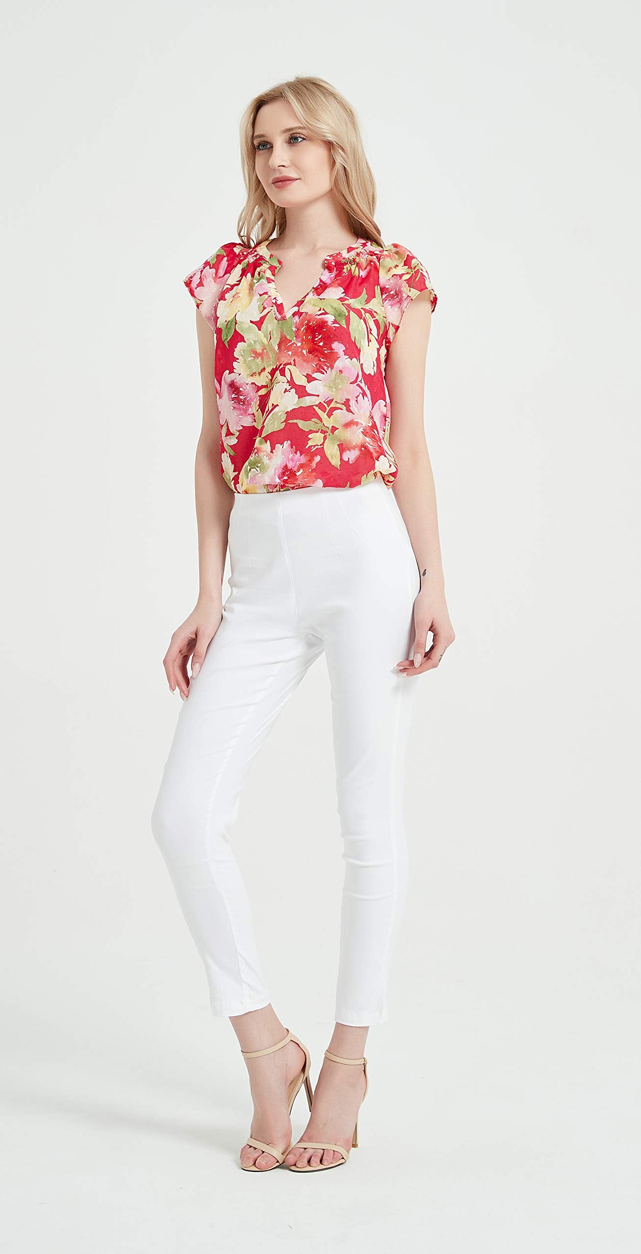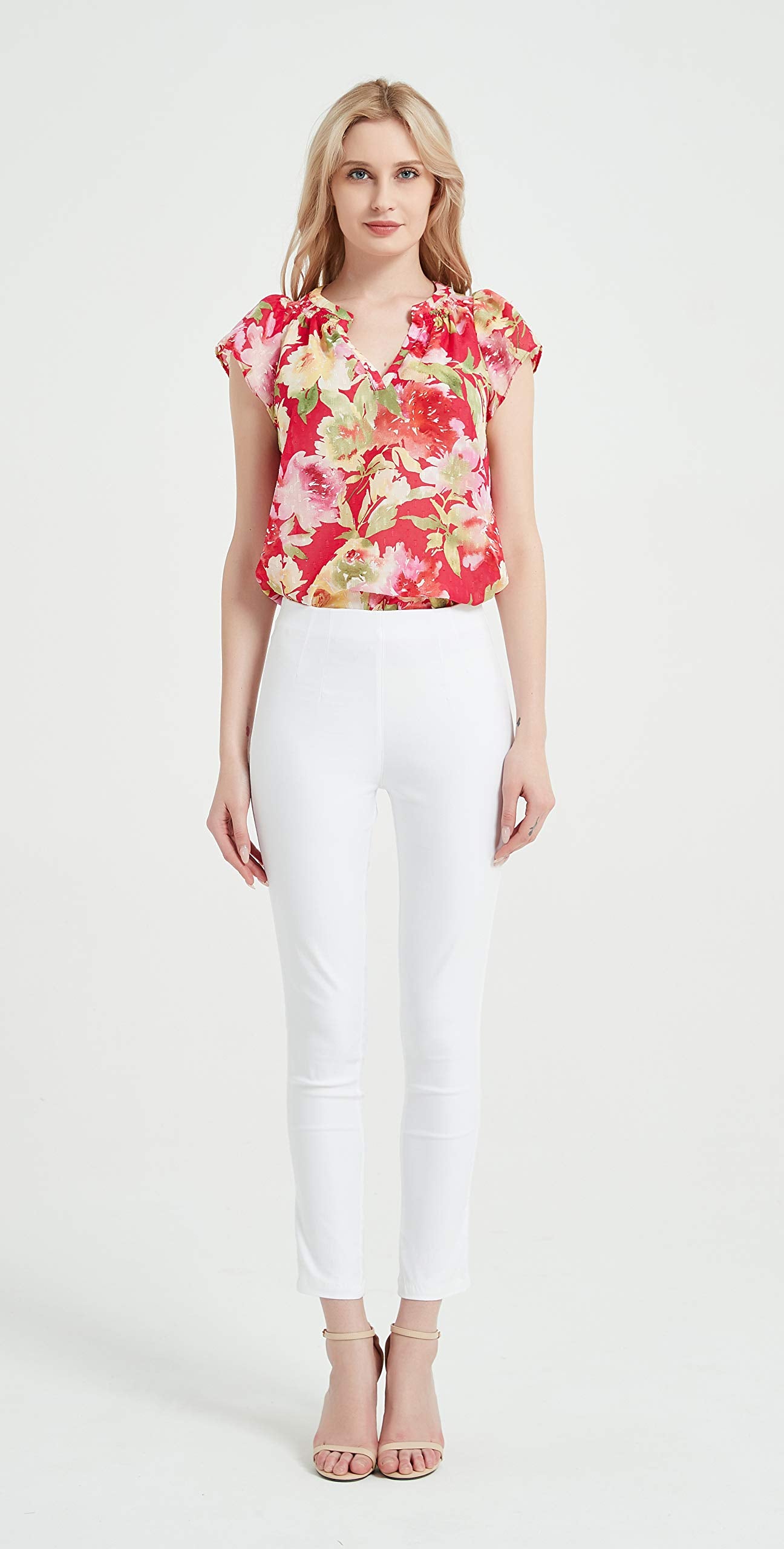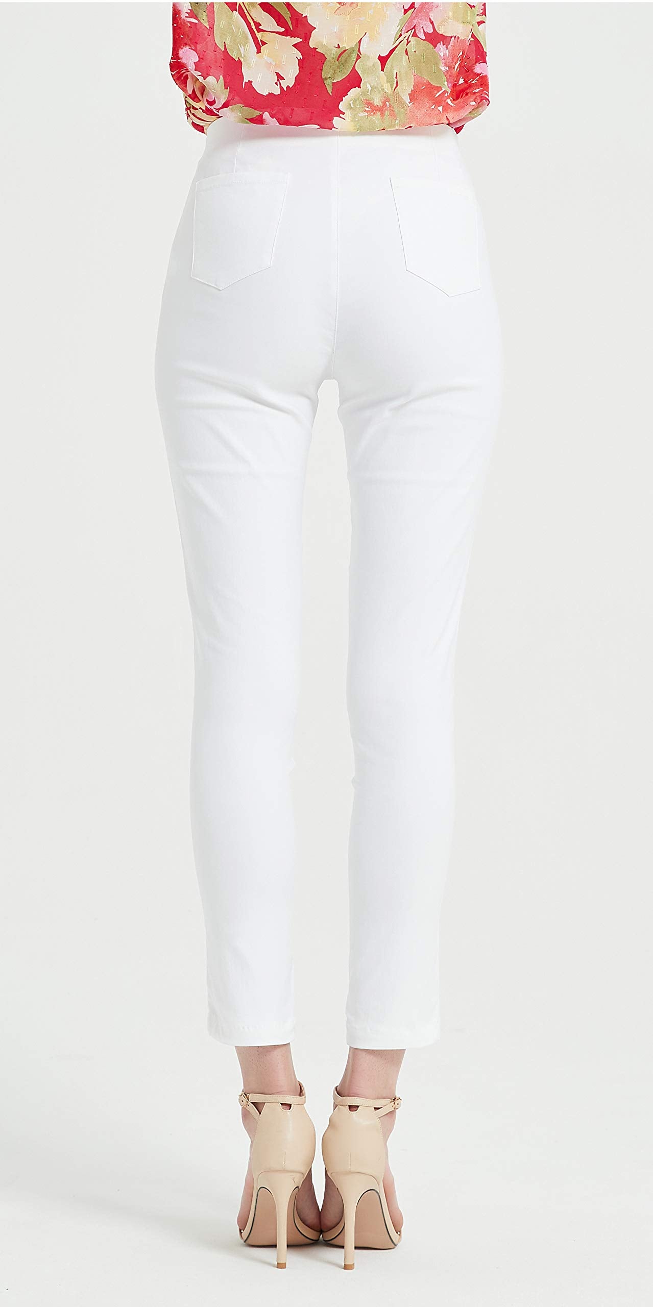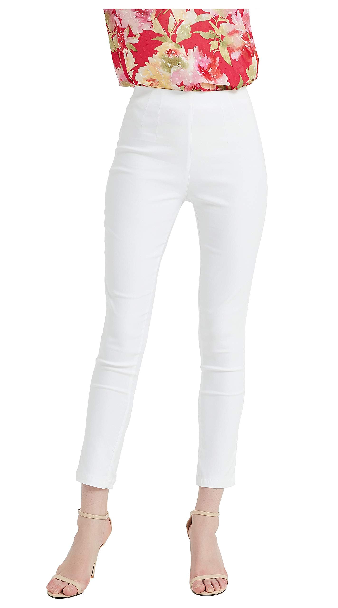 Tronjori Womens Elastic Waist Pull on Slim Pants Capris Mid Rise(L, White)