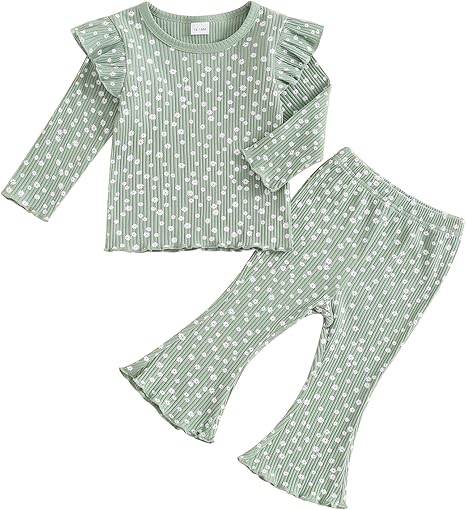 Baby Girl Fall Clothes Set Ruffle Long Sleeve Tops Flare Pants Cute Infant Toddler Outfits 6 12 18 24 Months 2T 3T