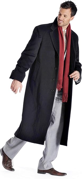 Cashmere Boutique: Men's Full Length Top Coat in 100% Pure Cashmere (Color: Black, Charcoal, Navy | 38/40/42/44/46/48/50)