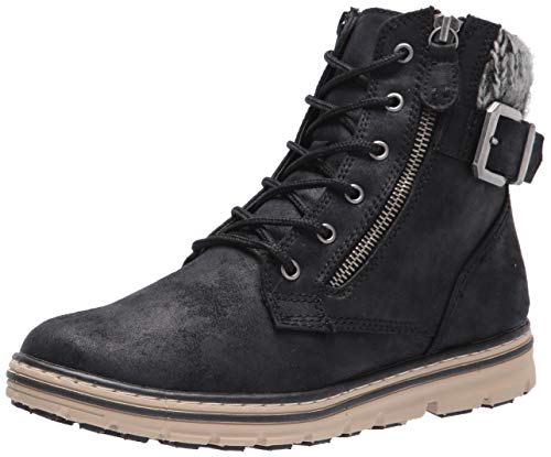Details: Women's Cliffs by White Mountain, Kelsie Boot. Keep warm and stylish in these hiker inspired lace up boots. Faux suede uppers with sweater collar and buckle detail Hiking boot style with a round toeLace-up entry with full side zip for secure fitLight cushioned insoleSynthetic lug outsole