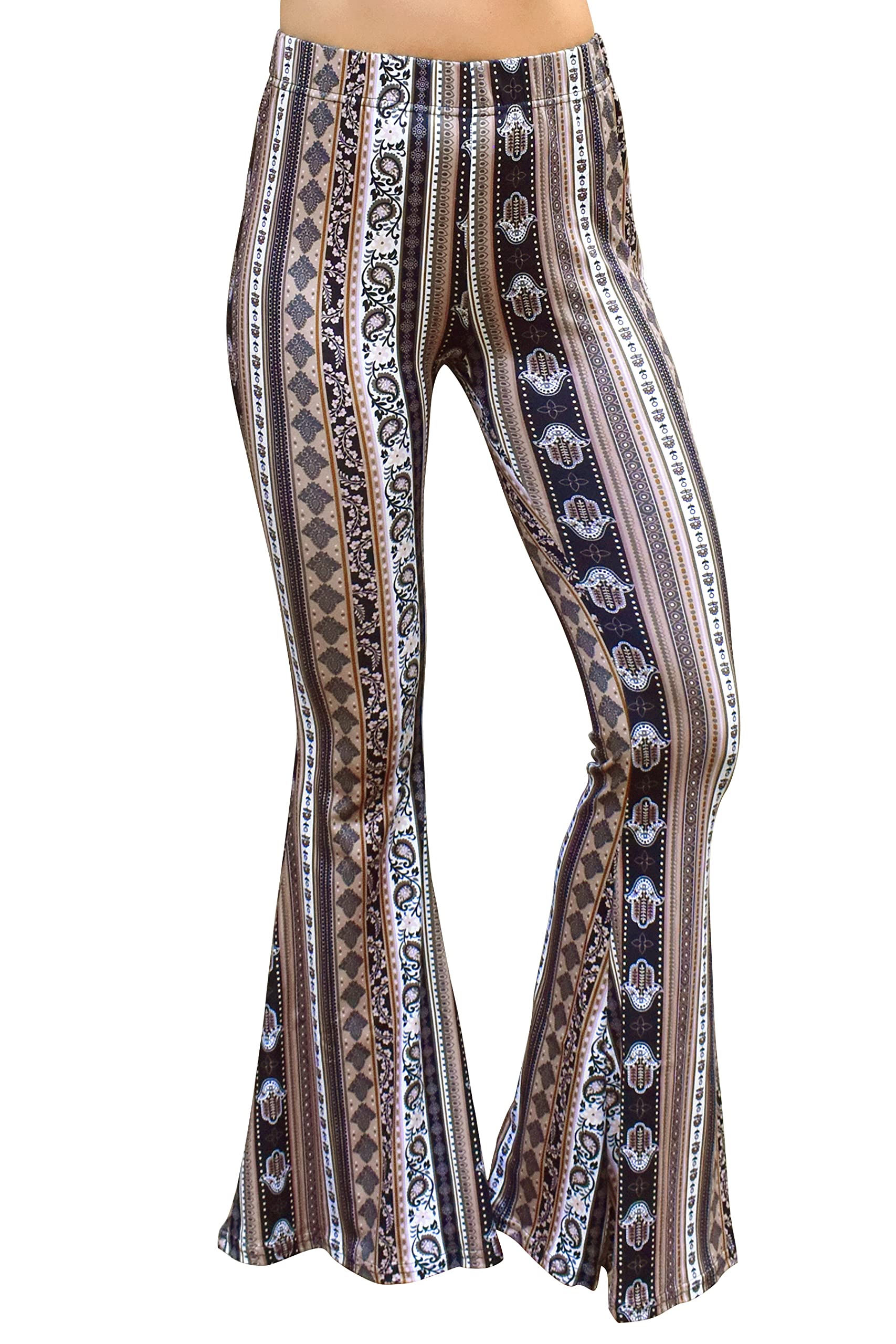 Details: ✿ Daisy Del Sol's pull-on stretch knit high waist bell bottoms in a beautiful boho floral and paisley prints. High rise, stretch fabric and amazingly flattering - try pairing with any muscle tanks or vintage tees. Dramatic bell, not for the faint of heart. Available in Size: Small, Medium, & Large. If unsure or in between sizes, we recommend purchasing the next size up. ✿ Available sizes: Small, Medium, Large, XL Length runs long! ✿ Best to buy next size up if unsure of sizing! ✿ Garment Measurements: ✿ XS Waist 22.5” Rise 9” Inseam 31.5” ✿ S Waist 24.5” Rise 9” Inseam 32” ✿ M Waist 26.5” Rise 9.5” Inseam 32” ✿ L Waist 28.5” Rise 9.5” Inseam 33” ✿ XL Waist 30.5” Rise 10” Inseam 33” ✿ XXL Waist 32.5” Rise 11” Inseam 33.5” ✿ Model Measurements: Bust: 32" Waist: 26" Hips: 36" Height: 5'5 ✿ Model is wearing size Small. ✿ Fabric: 95% Polyester 5% Spandex