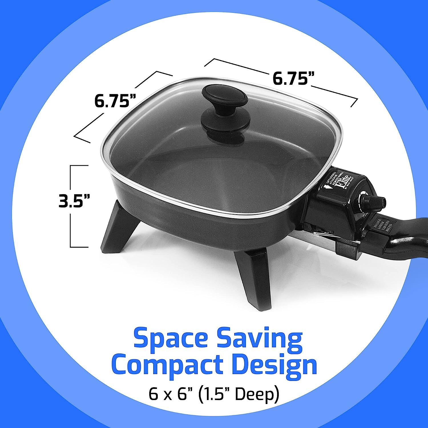 Elite Gourmet EFS-400 Personal Stir Fry Griddle Pan, Rapid Heat Up, 600 Watts Non-stick Electric Skillet with Tempered Glass Lid, Size 7" x 7"