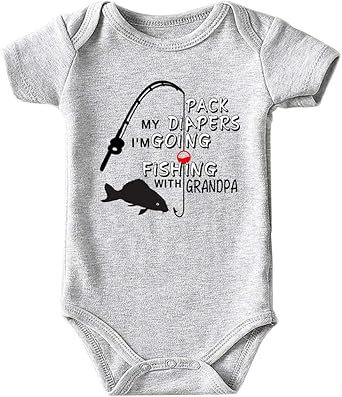 Fish With Grandpa Baby Boy Clothes Unisex Funny Baby Girl Bodysuits 0-3 months