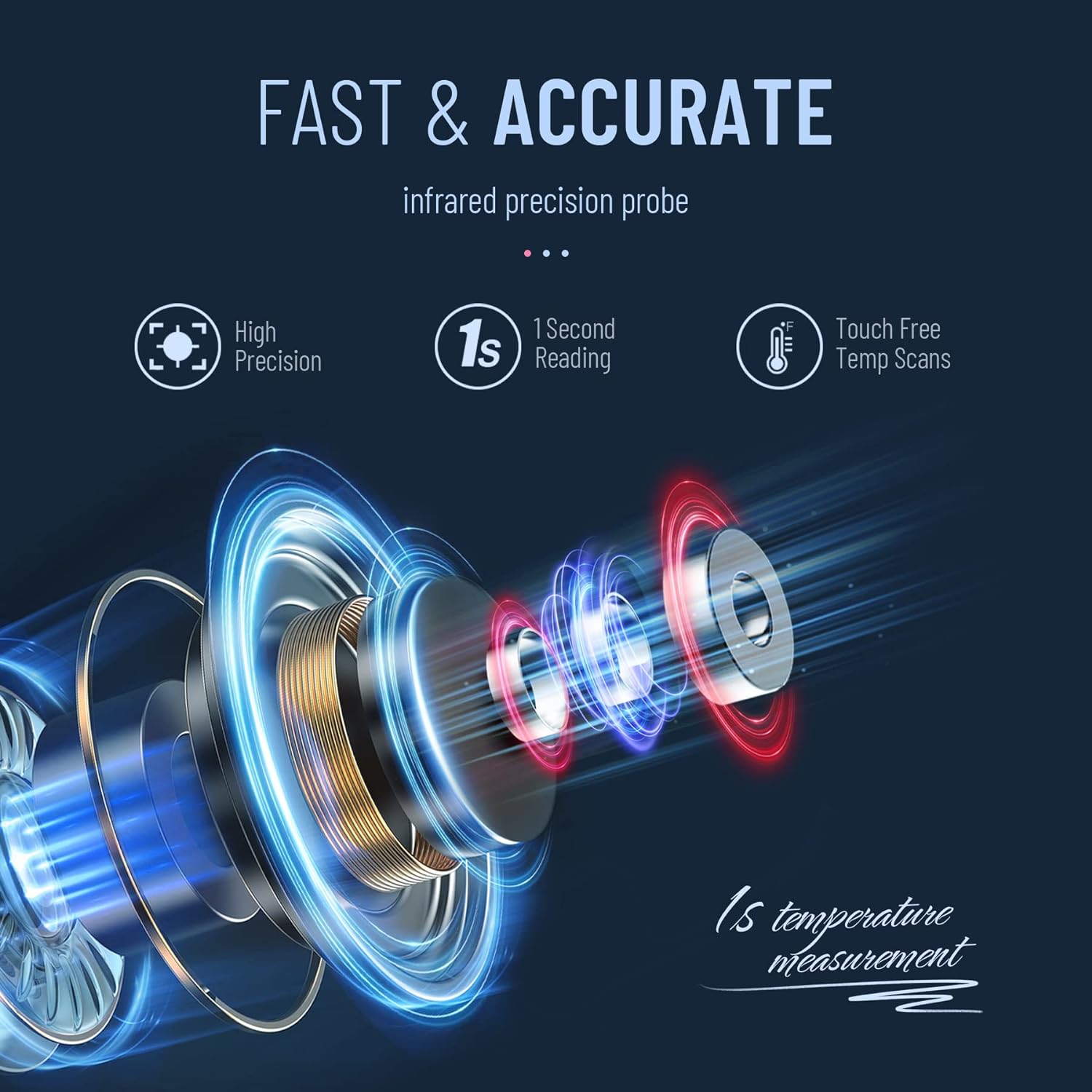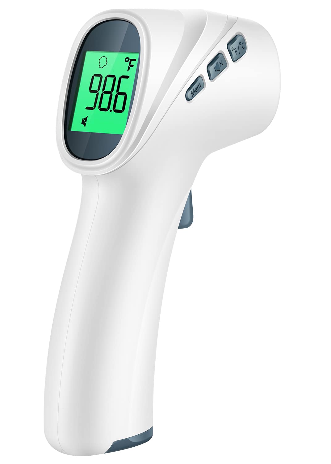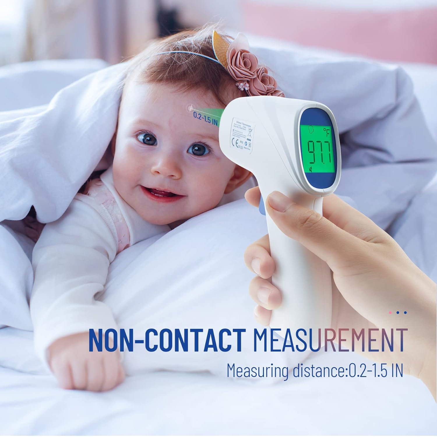 • No-Contact Thermometer: This touchless thermometer provides contactless accurate temperature reading that helps you avoid cross infections. No need to clean the thermometer after every use!