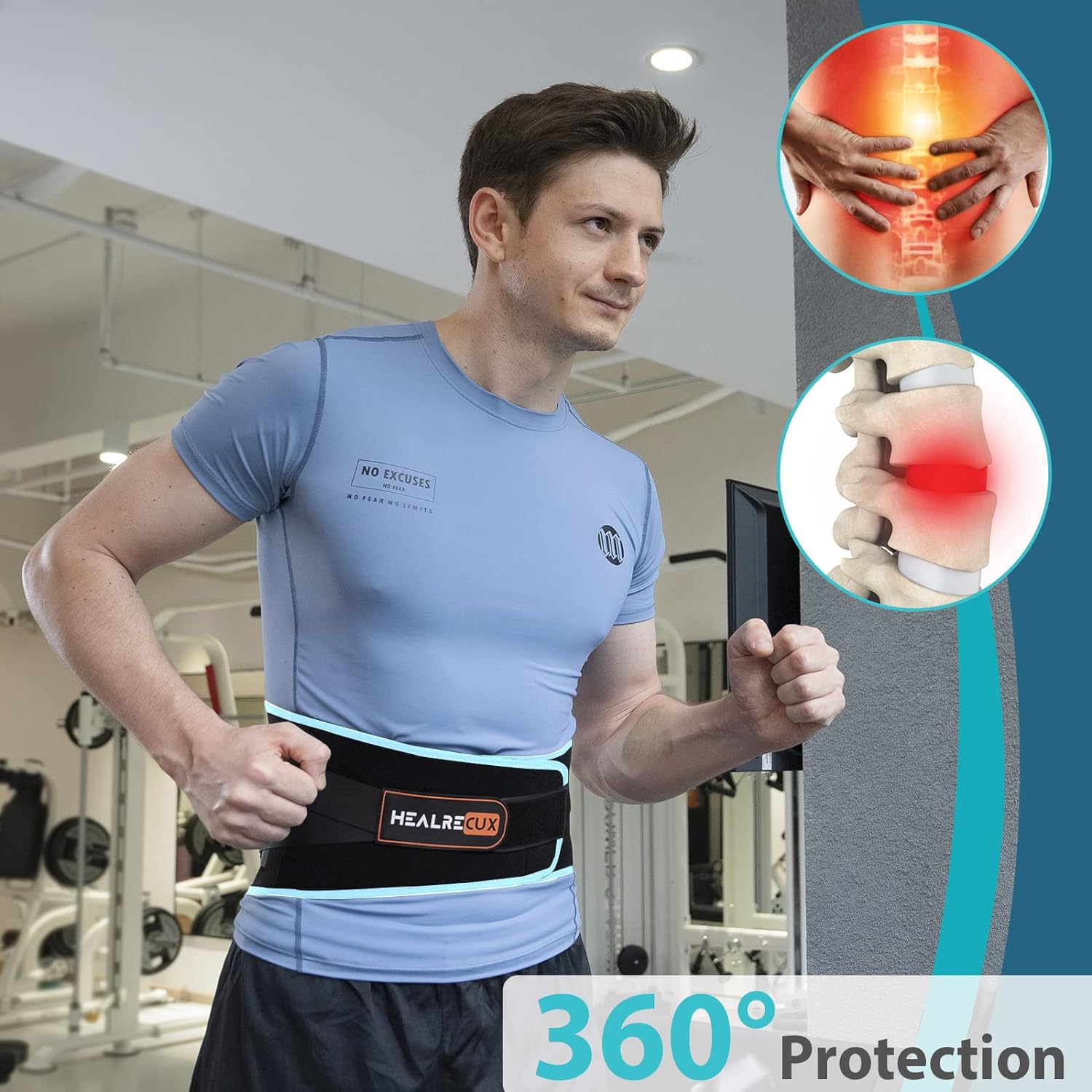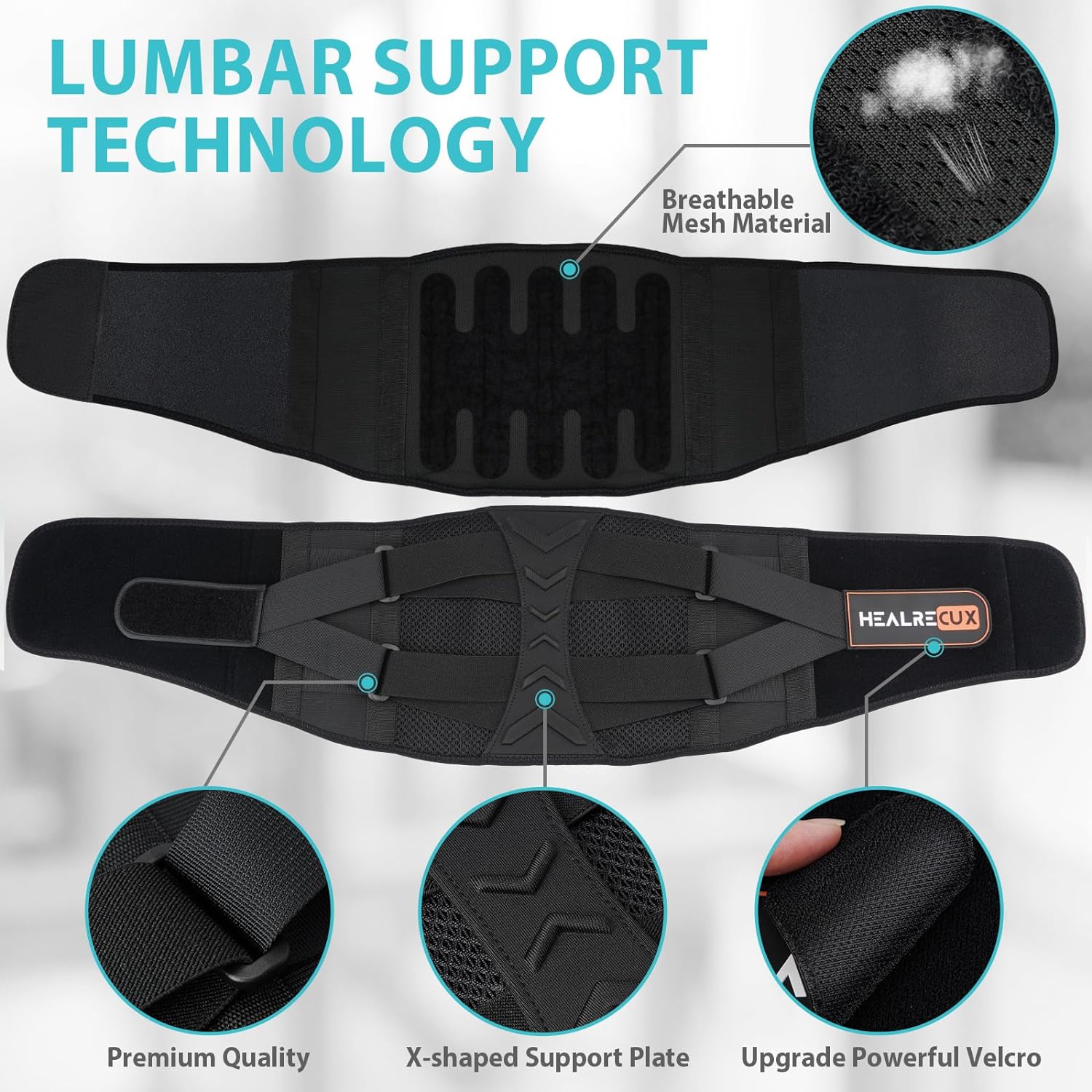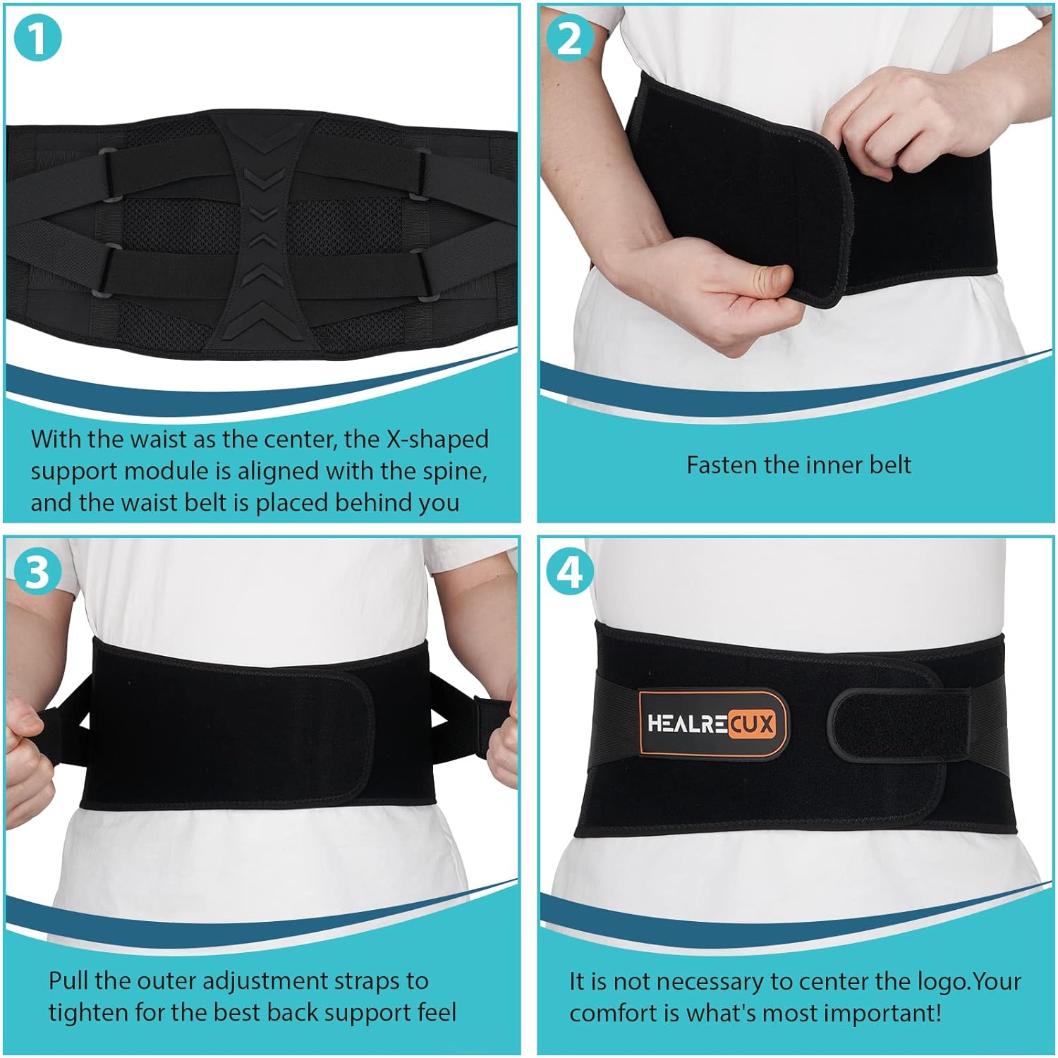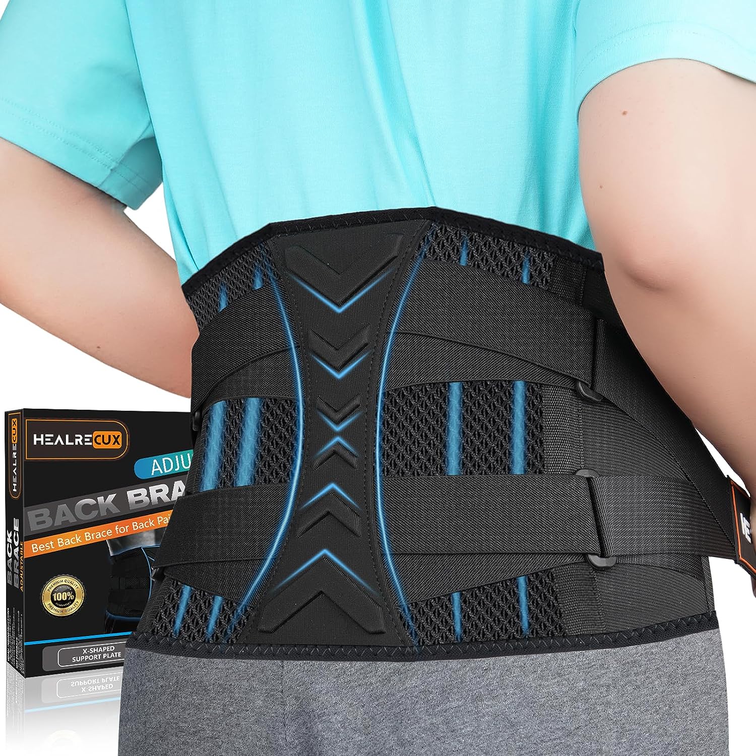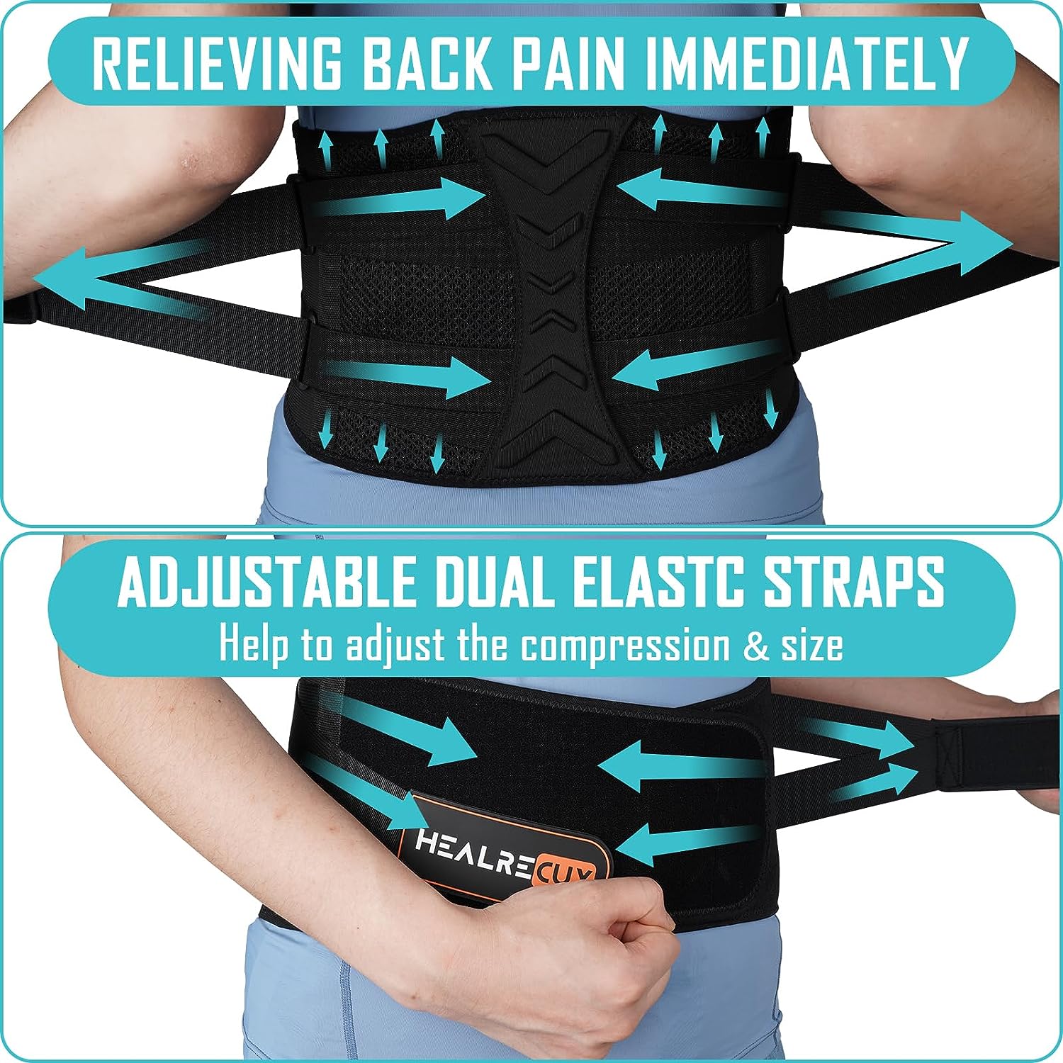 Healrecux Back Brace for Men Women Lower Back Pain Relief with 7 Stays, Back Support Belt with Dual Adjustable Straps,Lumbar Support Belt for Herniated Disc, Sciatica,Scoliosis L/XL(Waist:29.5"-41.3"