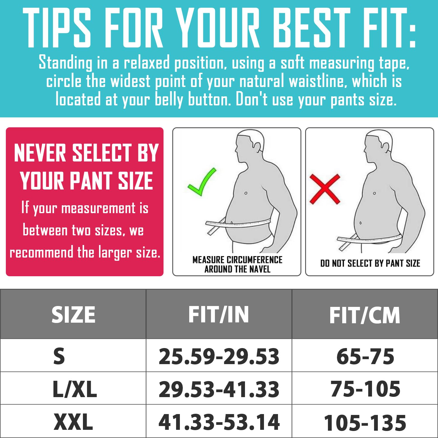 • 【CHOOSE YOUR SIZE】S: Fits 25.6-29.5inches.L/XL: Fits 29.5-41.3 inches.XXL: 41.3-53.1inches. Please measure your waistline correctly (same level as your navel), instead of your pants size.