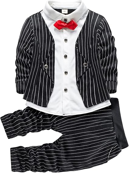 HZXVic Baby Boys Gentleman Outfits Suits, Toddler Boy Clothes Formal, Kids Dress Shirt+Bow Ties+Pants Set