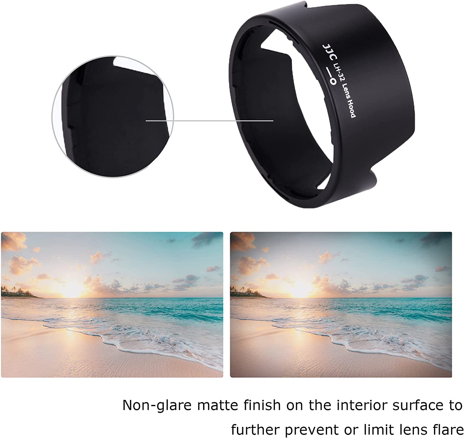 • Professional Design: Non-glare matte finish on the interior surface to further prevent or limit lens flare. No vignetting with the hood on.