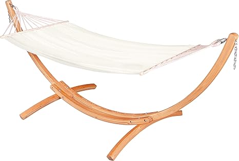 LA SIESTAïë Chillounge Hammock with Spreader Bar & Wood Stand, Weatherproof Outdoor Hammock with Stand for Outside Patio Backyard, Wooden Hammock Stand, Heavy Duty Hammock and Stand -Max 265 Lbs, Beach