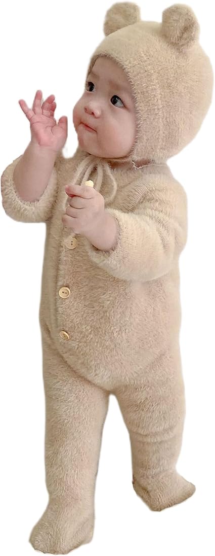 Newborn Infant Baby Girls Boys Jumpsuit Fleece Rompers Long Sleeve Footie Jumpsuit Hat Outwear Winter Warm