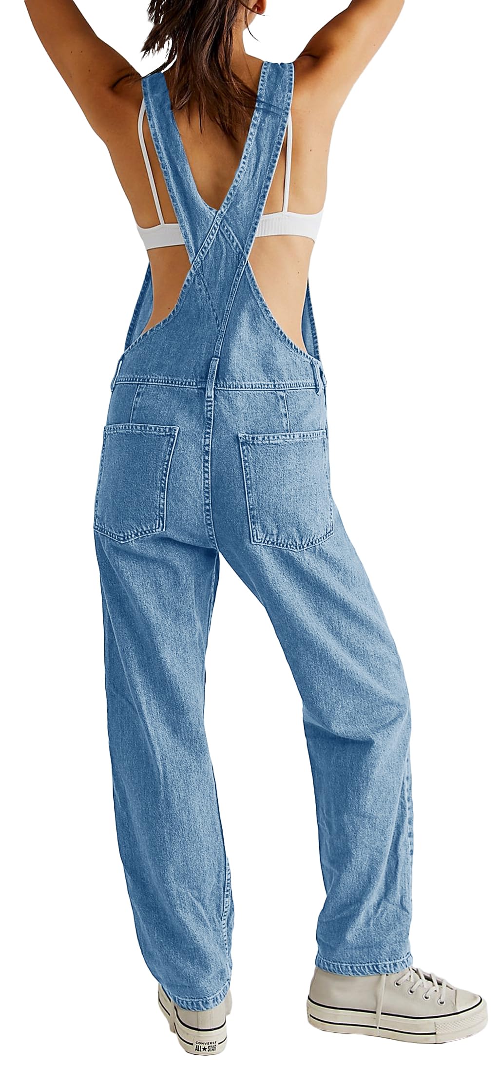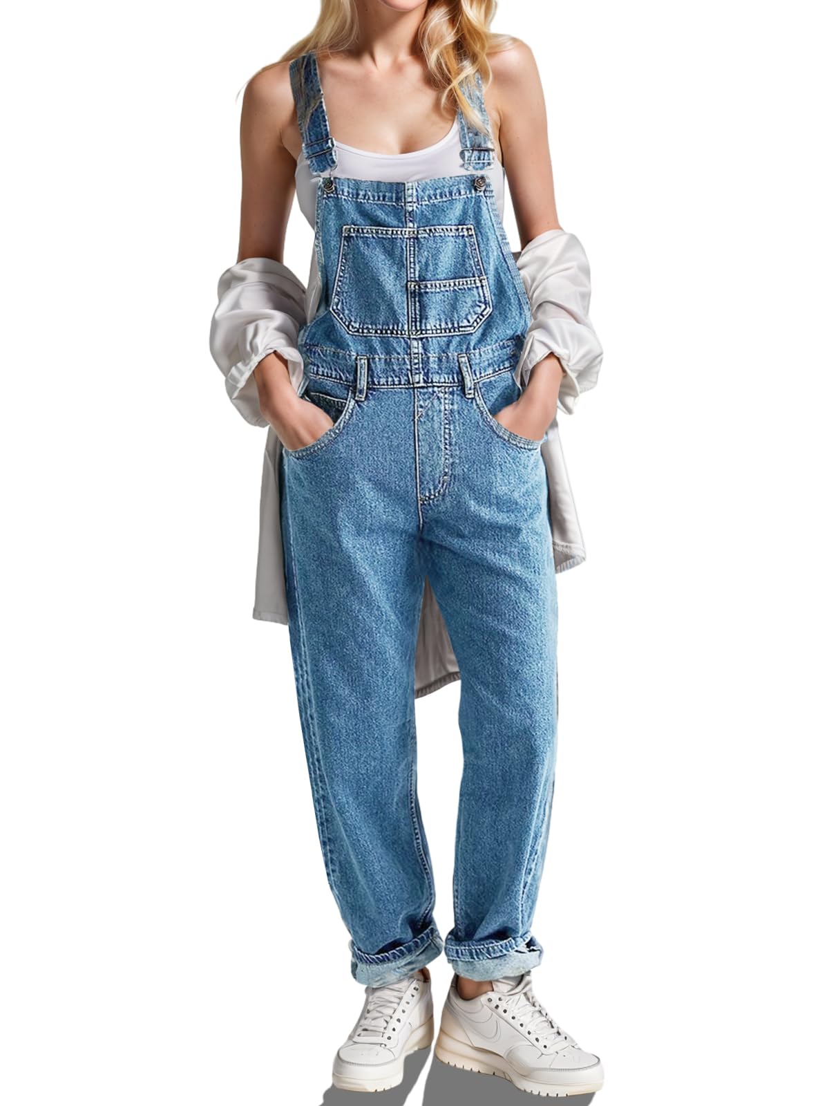 PLNOTME Women's Casual Denim Overalls Adjustable Straps Jeans Pants Jumpsuits with Pockets
