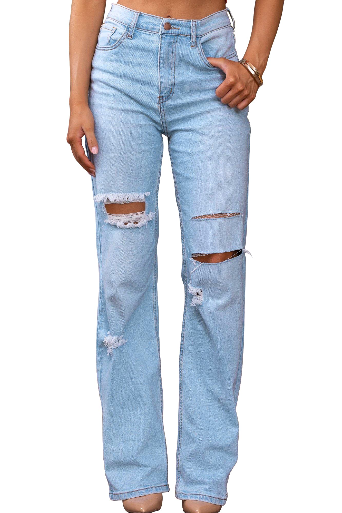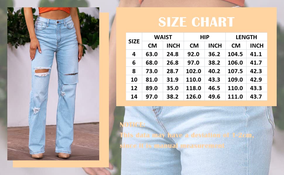 • FEATURE: This jeans has straight leg, distressed design, ripped, high rise, it is fashion and unique, you will have a stylish look in this pair of jeans
