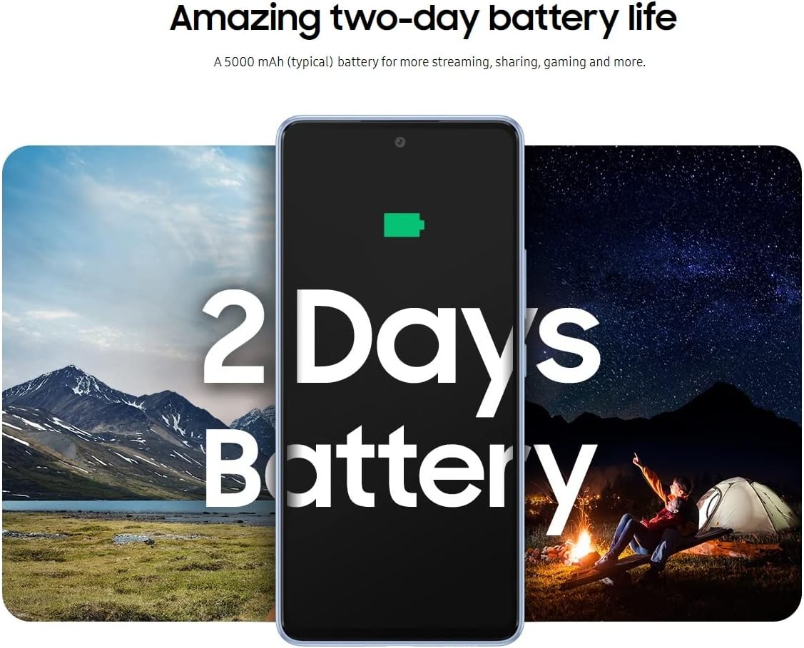 LONG-LASTING BATTERY: Your busy life deserves a battery built for busy; Whether you’re taking a video call on your commute, catching up on your favorite show or with friends and family, your long-lasting, super fast charging battery has your back. POWERFUL PERFORMANCE: The very best of Galaxy A Series gives you awesomely smooth streaming of your favorite content with the most powerful performance in its series and awesomely fast speeds to download shows and movies — all at the speed of 5G. EXPANDABLE STORAGE: Galaxy A53 5G gives you the A Series’ biggest built-in storage and lets you enjoy more memories and entertainment; With an additional 1TB of expandable storage with a microSD card, you can hold on to every smile and relive every epic vacay. INTELLIGENT CAMERA: Capturing content is as easy as pose, shoot and share with A53 5G’s intelligent camera; Single Take lets you capture video, pictures and more with just one tap, while image stabilization technology makes sure every clip is crystal clear. INFINITE DISPLAY: Whether you’re streaming short videos or kicking back to complete a whole series, the Galaxy A53 5G Super AMOLED display is built to keep you entertained, with incredible color clarity that translates into awesome resolution. MODERN DESIGN: Life happens, but Galaxy A53 5G*** provides a premium slim design that is built to last through those unpredictable moments; The body was engineered to endure, so you can worry less around water and dust.