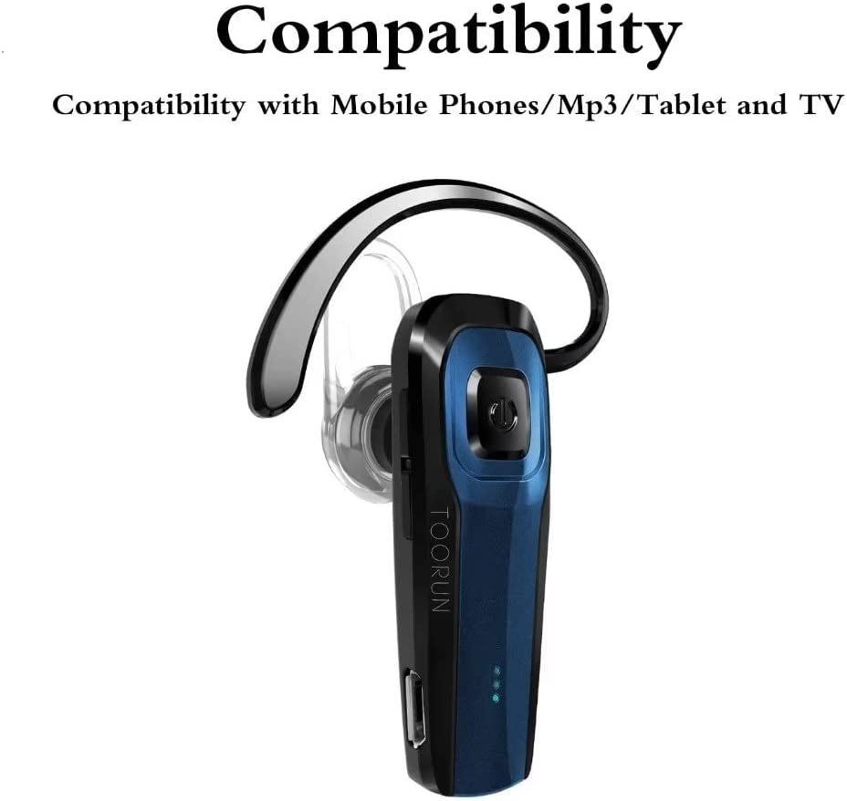TOORUN Bluetooth Earpiece, M26 Bluetooth Headset Handsfree V5.0 Wireless Earpiece Headphone with Noise Reduction and Microphone Compatible for Android iPhone Cell Phone Laptop - Blue