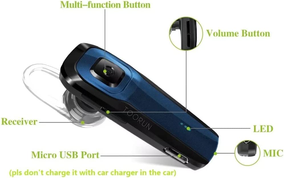• [STRONG AND LONG LASTING BATTERY] - This TOORUN M26 Bluetooth headset handsfree can play music continuously for 13 hours. you can all day enjoy this bluetooth earpiece no charging anxiet.