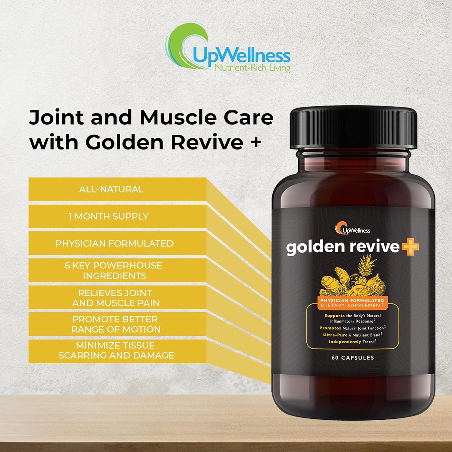 UpWellness Golden Revive + Joint Support with Quercetin, Magnesium, and Turmeric - 60 Capsules - 6 Active Ingredients for Joint and Muscle Care - Physician Formulated