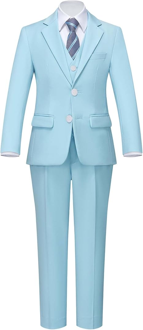 YND Boys 5 Piece Slim Fit Suit Set, Solid Formal Dresswear of Jacket Vest Pants Shirt and Tie