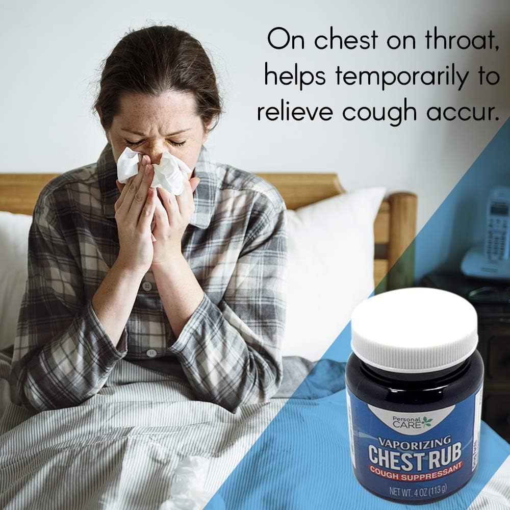Personal Care 4 oz, Vaporizing Chest Rub, Cough Suppressant, For Use On Chest & Throat, Helps Temporarily Relieve, Decrease, Suppress, Quiet, & Alleviate Cough As May Occur With Common Cold & Minor Bronchial Irritation.