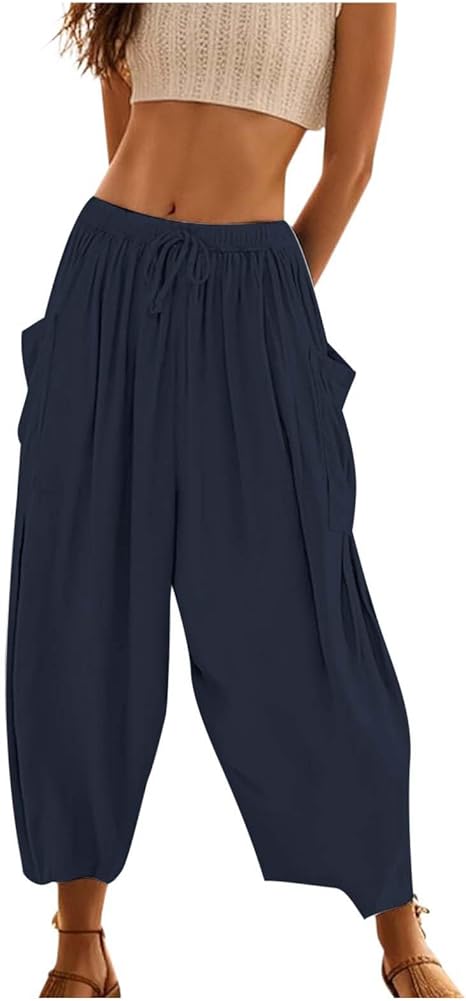 Women Sweatpants Womens Cotton Cargo Capris Soft Stretch Drawstring Travel Casual Capri Pants for Women with Pockets