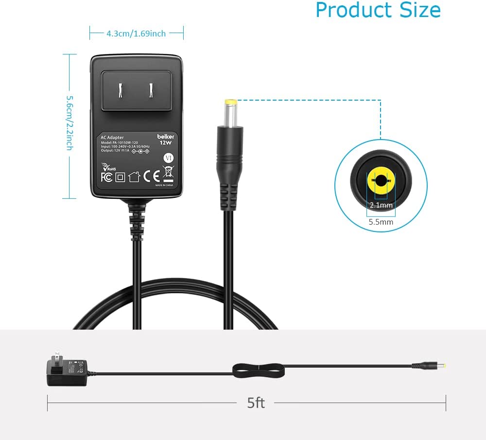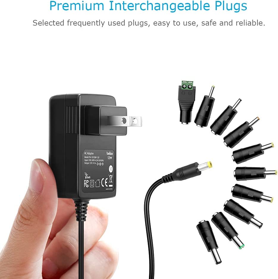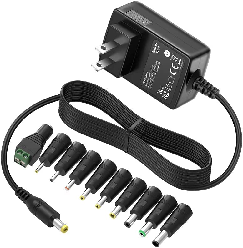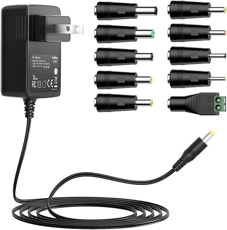 Belker 12v 1a interchangeable plugs AC to DC power adapter supply cord.