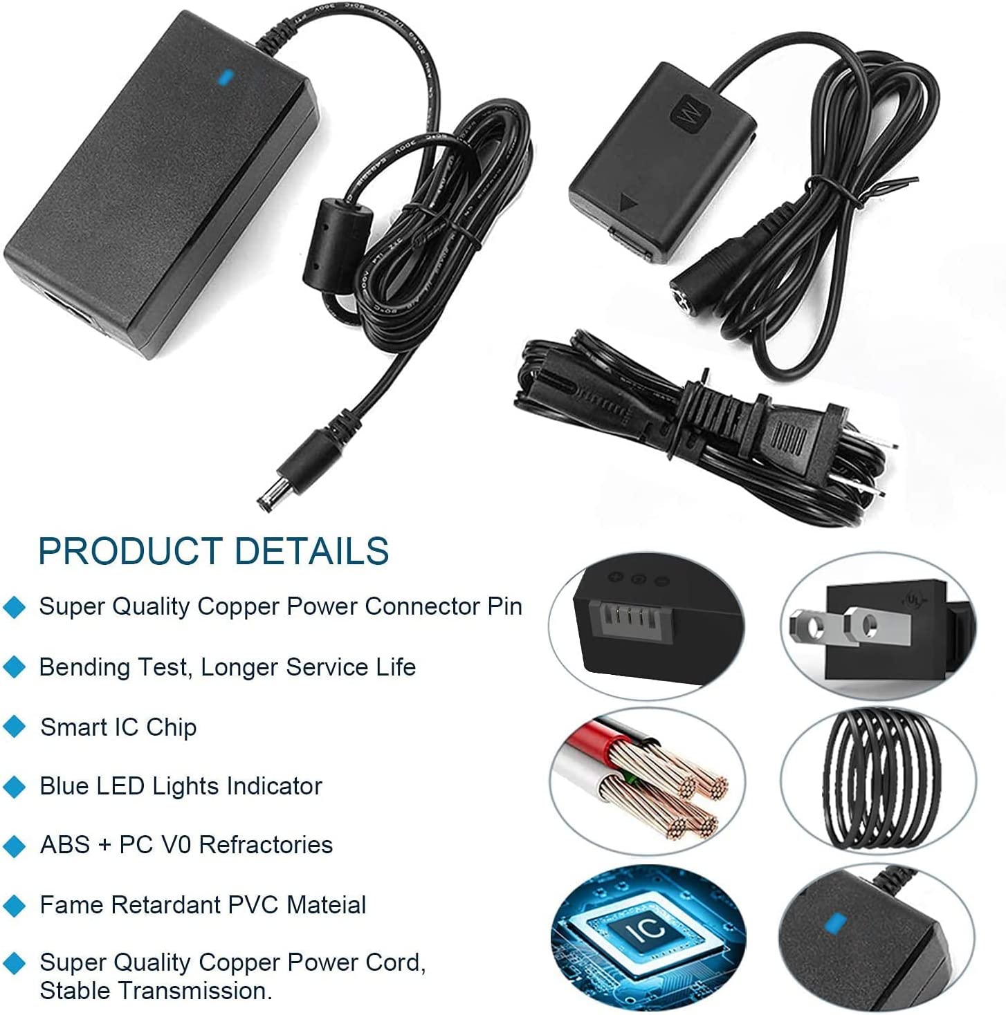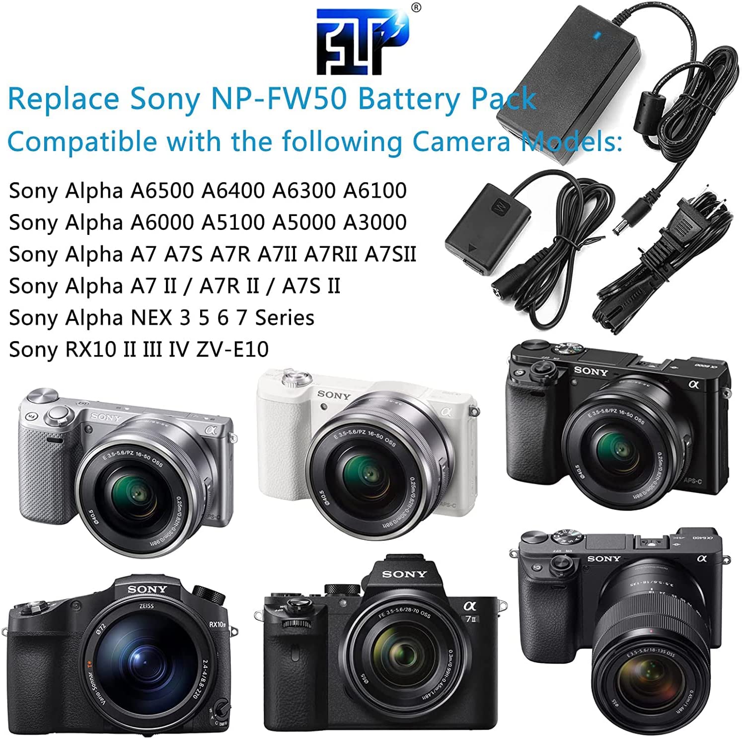 F1TP AC-PW20 AC Power Adapter NP-FW50 Dummy Battery Kit for Sony Alpha A5100 A6000 A6100 A6300 A6400 A6500 ZV-E10 A7 A7R A7S A7II A7RII A7SII RX10 II III IV NEX5 NEX7 Cameras.