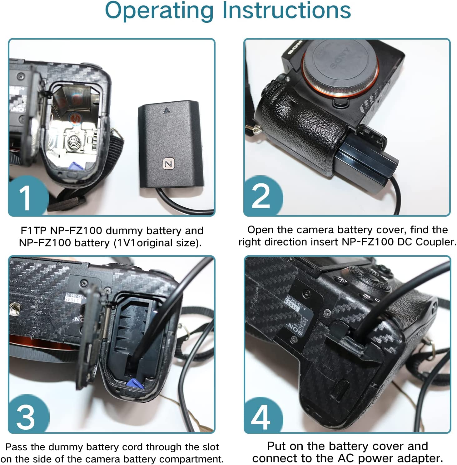F1TP NP-FZ100 AC Power Adapter Dummy Battery Kit for Sony Alpha A6600, A7C, A7III, A7SIII, A7RIII, A7RIV,A1, FX3, A9II, A9R, A9S Cameras