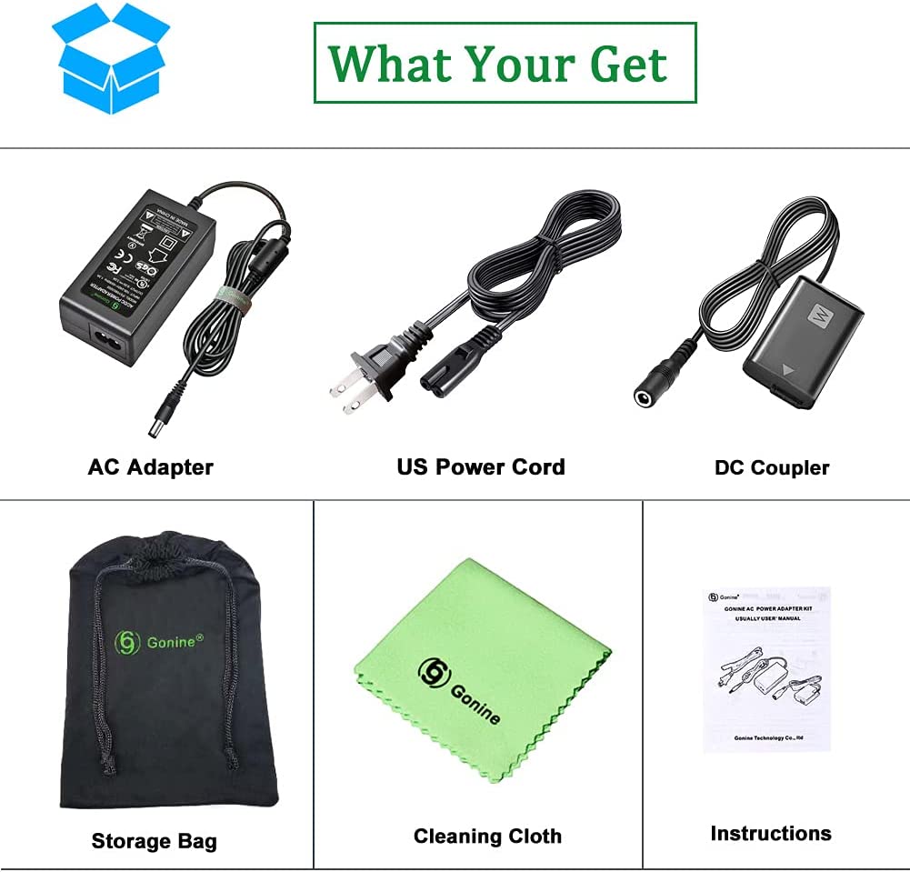 • [ADVANTAGE:] The Gonine np-fw50 dummy battery dc coupler replaces the Sony npfw50 battery, It work with the Gonine ACPW20 power adapter to continuously provide power to the camera, Whether shooting Photos Videos Broadcast live Video conferencing Vlog, no need to worry about the sudden power failure of the camera.