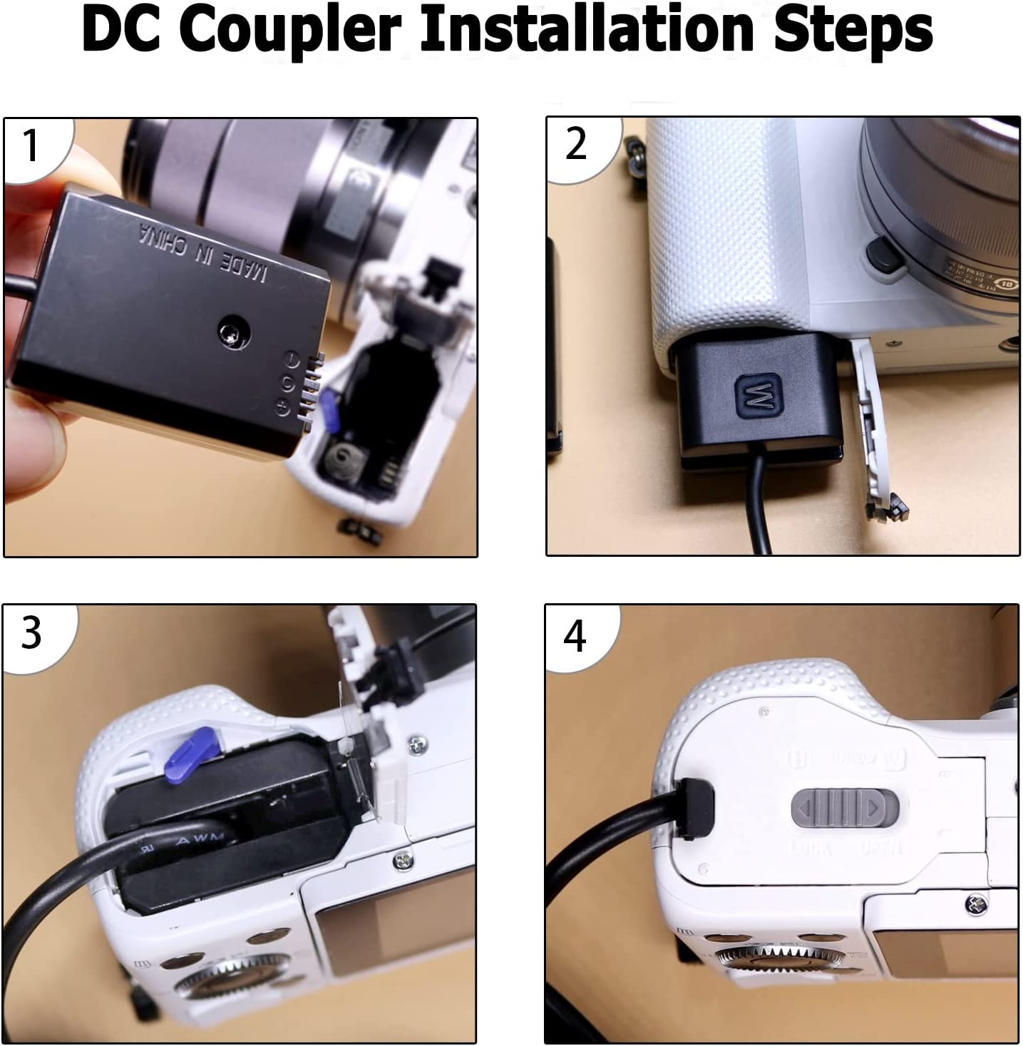 • [Very Important: ] Please be sure to close the camera battery compartment door, otherwise it may not be able to start the camera. Do not connect other brand power adapters, otherwise your camera may be damaged. ​