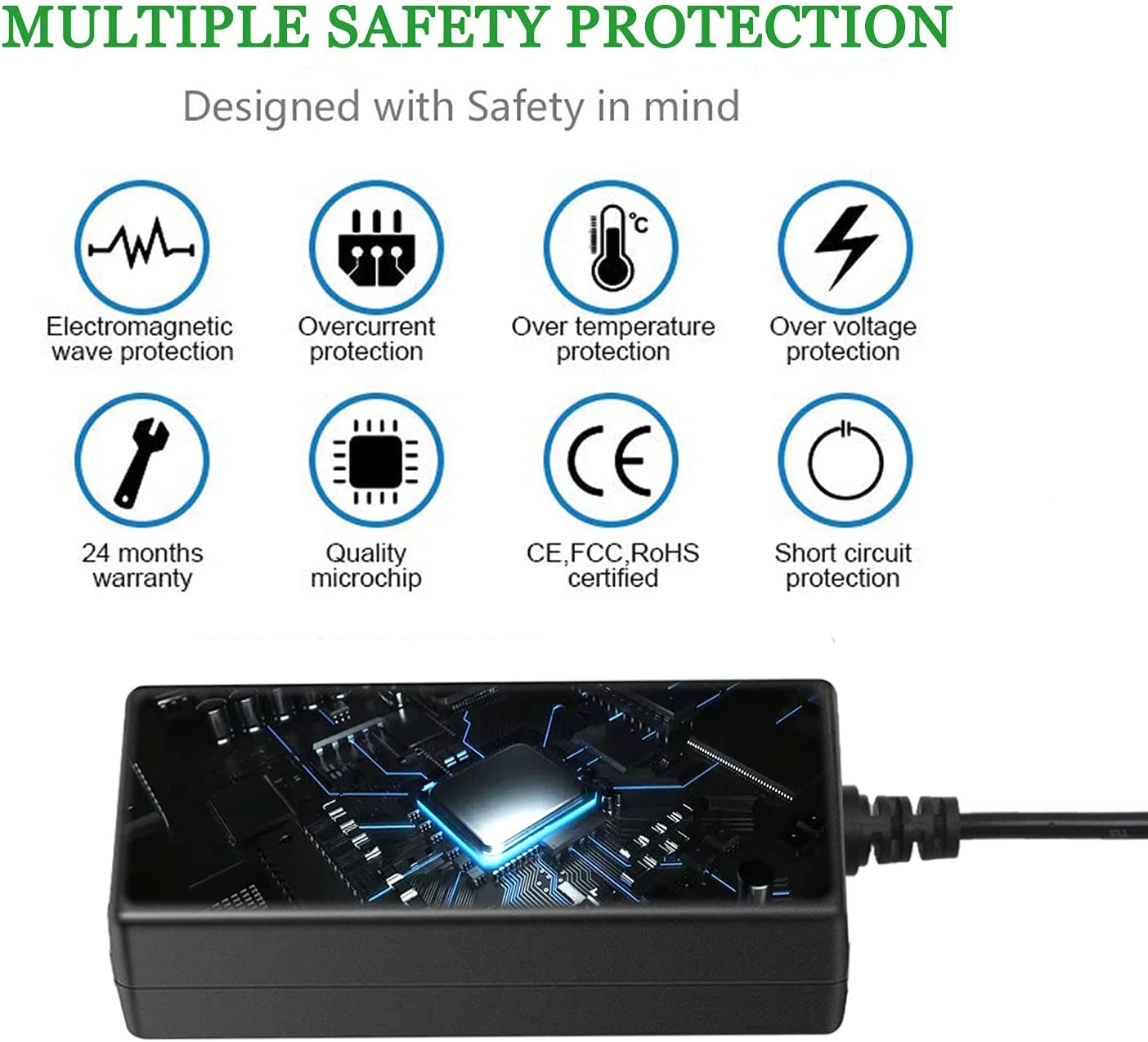 • [ACPW20 POWER SUPPLY SAFTE PROTECTION:] ETL UL CE FCC and Rohs certified, with over voltage protection, over heat protection, overcharge and short circuit protection.