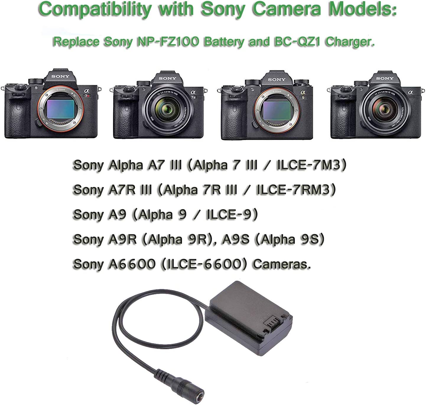 • COMPATIBLE WITH: This Gonine NP FZ100 A7III dummy battery npfz100 dc coupler for Sony Alpha A6600, A7 III, FX3, A7C, A1, A7 IV, A7R III, A7S III, A7R IV, A9 II, A9, A9S, A9R Cameras. Replace Sony BC-QZ1 Charger.