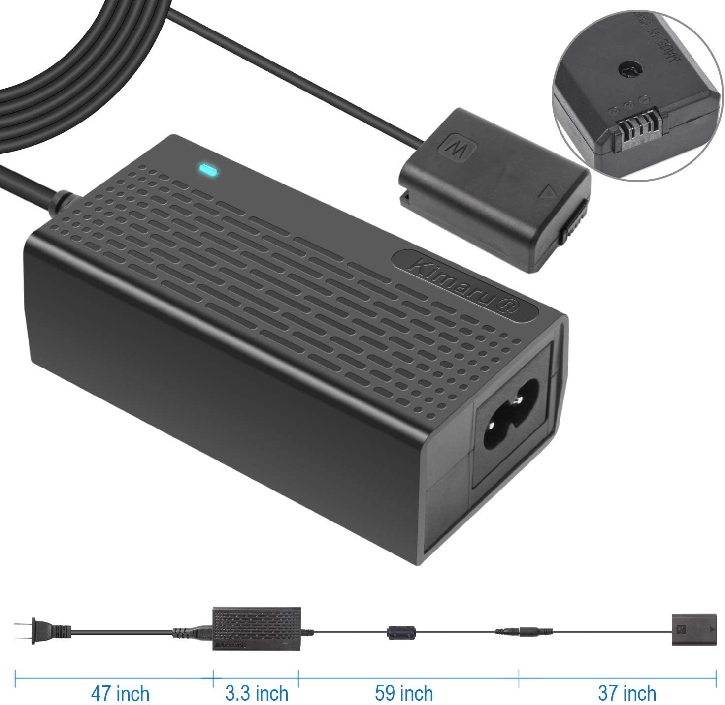 Kimaru AC-PW20 Power Supply Adapter NP-FW50 Dummy Battery Kit for Sony Alpha ZV-E10 A6000 A6100 A6300 A6400 A6500 A5000 A5100 A7 A7II A7RII A7S A7SII RX10II III IV NEX3/5/6/7 Cameras.