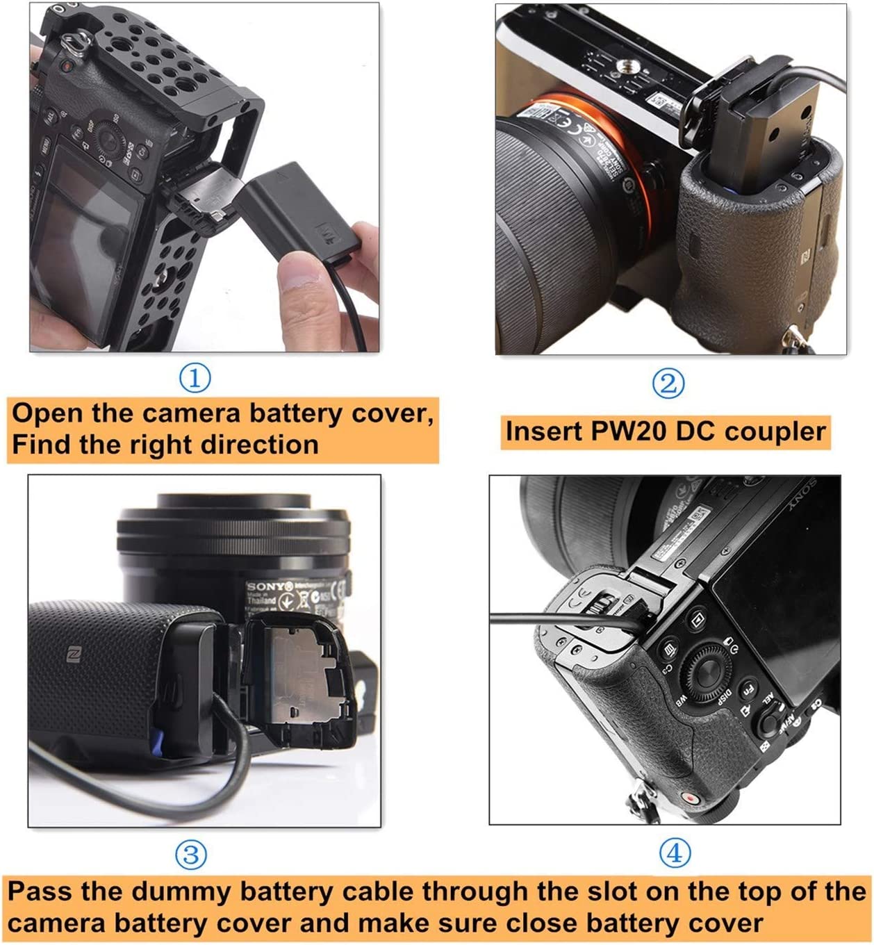 • Compatibility: NP-FW50 Dummy Battery kit for Sony alpha 7, a7, a7II, a7R, a7RII, a7S, a7SII,, ZV-E10, a6000, a6100, a6300, a6500, a5000, a5100, a3000, NEX-3N, NEX-5N, NEX-5R, NEX-5T, NEX-6, NEX-7, NEX-C3, NEX-5C, SLT-A33, SLT-A35, SLT-A37, SLT-A55, ILCE-QX1, ILCE-QX1L, DSC-RX10, RX10 II, RX10 III Cameras.(Not compatible with Sony A7 III, A7R III, A7S III)