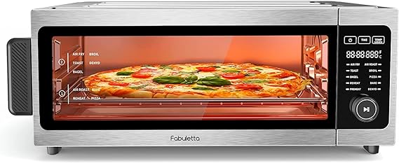 Air Fryer Toaster Oven Combo, Fabuletta 10-in-1 Toaster Ovens Countertop 1800W, 100-450ԍF Temperature Control‚_•Flip Up & Away Capability for Storage Space, Enamel Baking Pan Easy Clean with Recipe Book