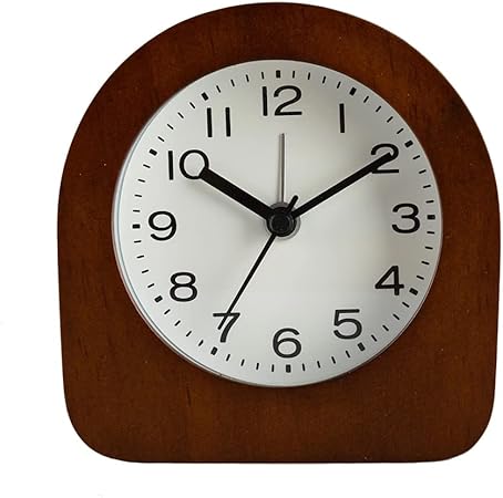 3-Inches Wooden Mantel Alarm Clock with Arabic Numerals, Non-Ticking Silent, Backlight, Battery Operated, Brown