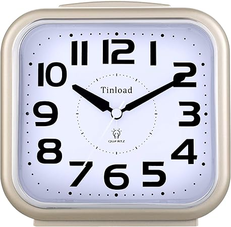 5.5" Silent Analog Alarm Clock Non Ticking, Gentle Wake, Beep Sounds, Increasing Volume, Battery Operated Snooze and Light Functions, Easy Set, Gold (Best for Elder)