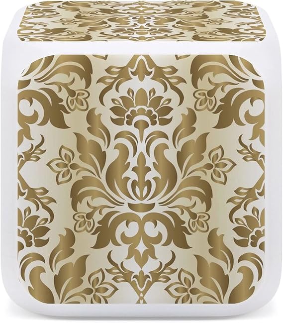 Donnapink Luxury Gold Damask Seamless Golden Floral Flowers Texture Mini Digital Alarm Clocks, Wake Up Bedside Clock, LED Night Glowing Cube Clock Desk Table Clock with Data and Temperature Gift