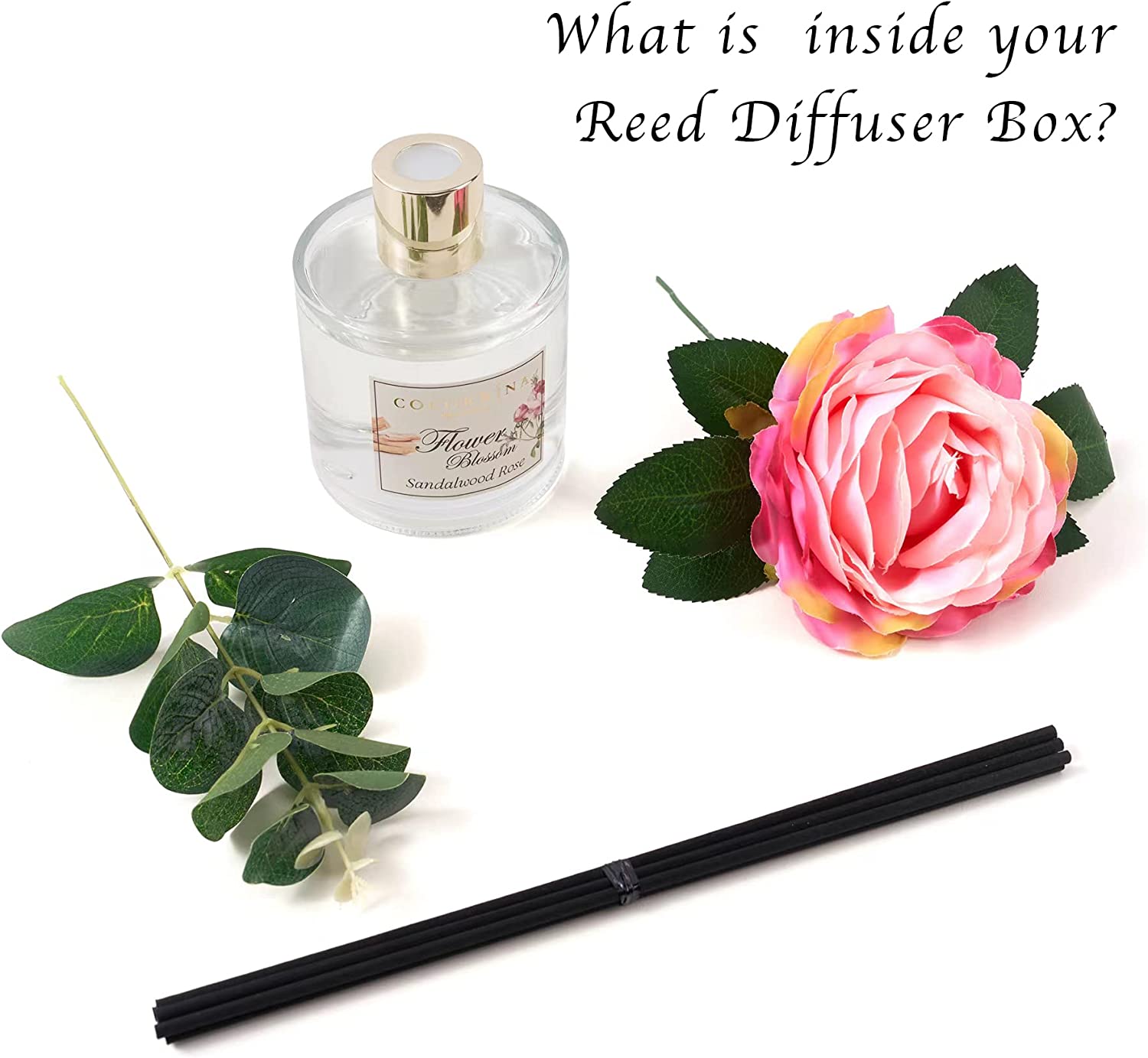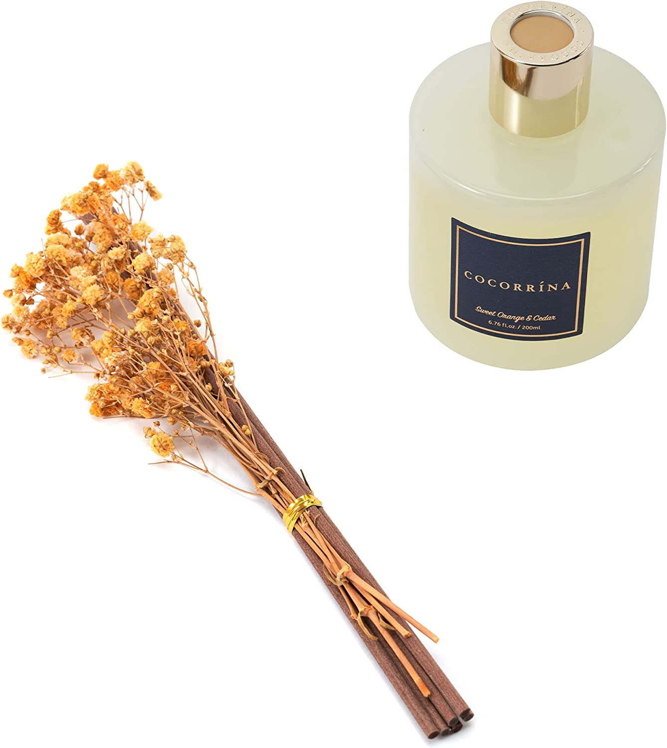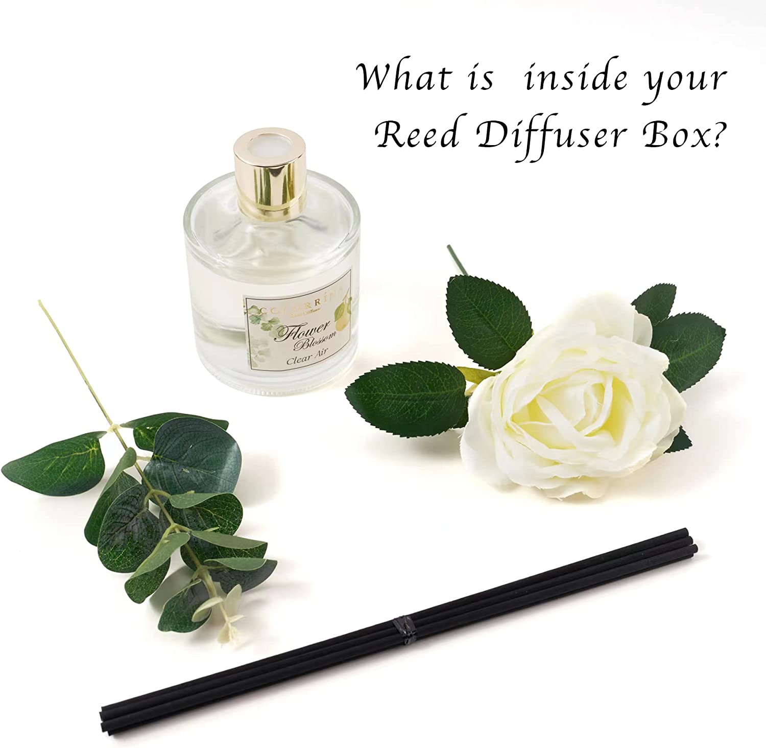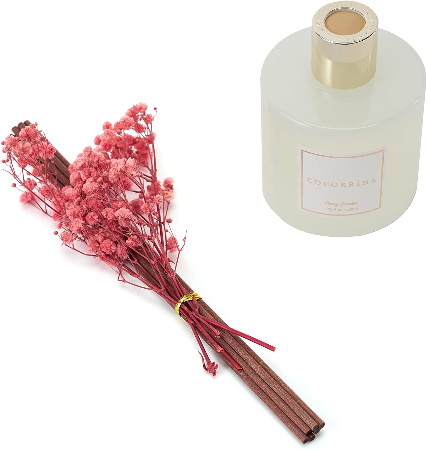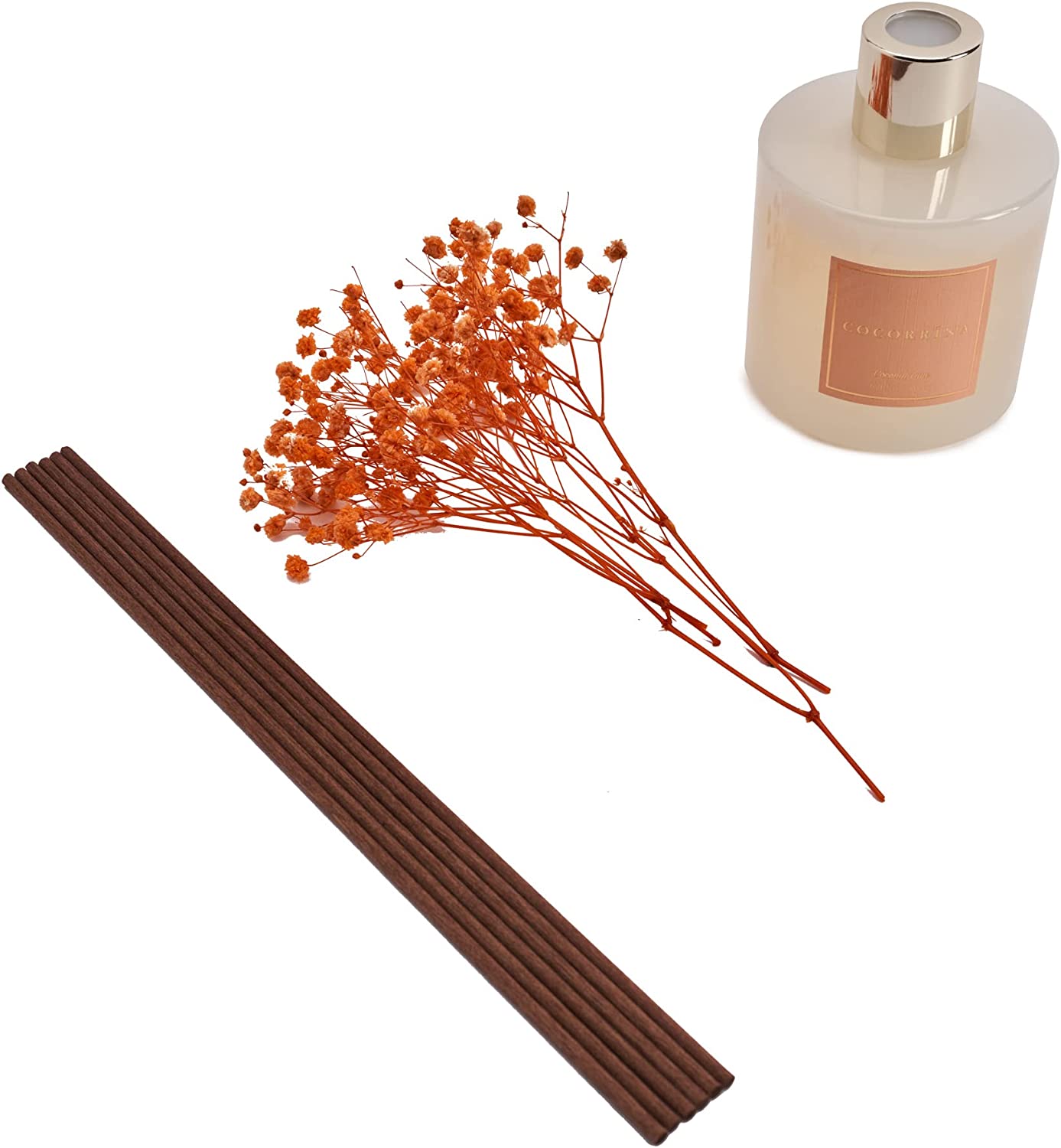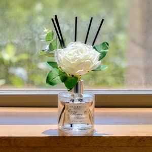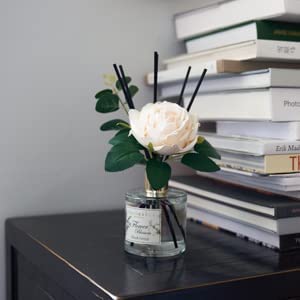 • Includes: One fragrance diffuser glass bottle, 6.7 fl oz mixture of essential oils combined with fragrance, one pc. of real preserved baby's breath flowers, and six pure cotton sticks. Adjust the amount of aroma released by adding or removing the sticks.