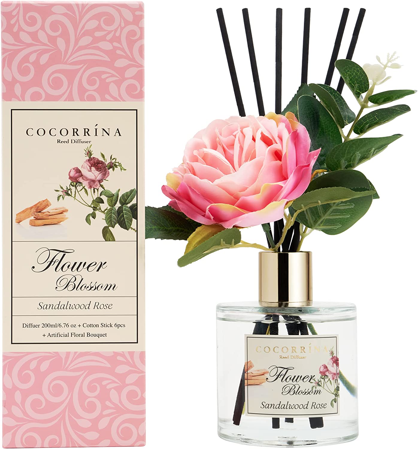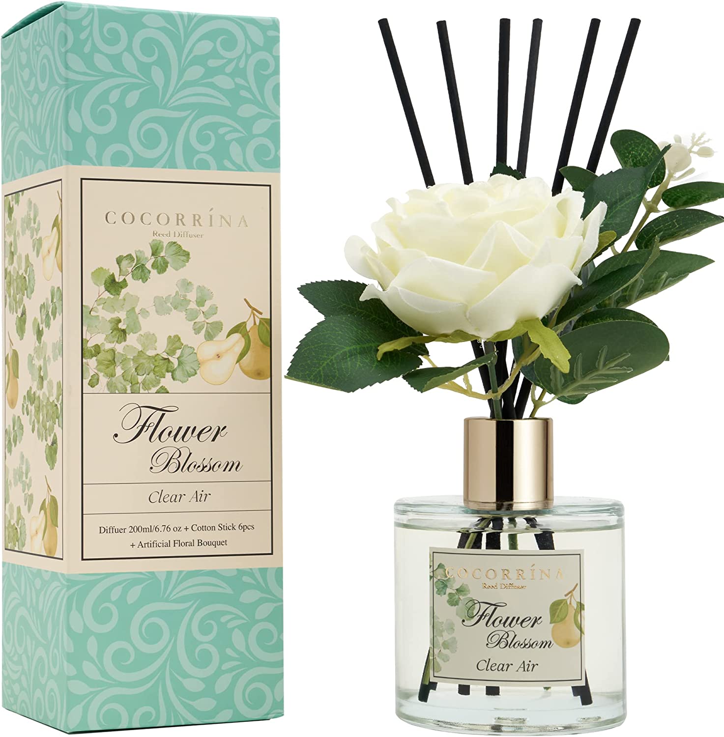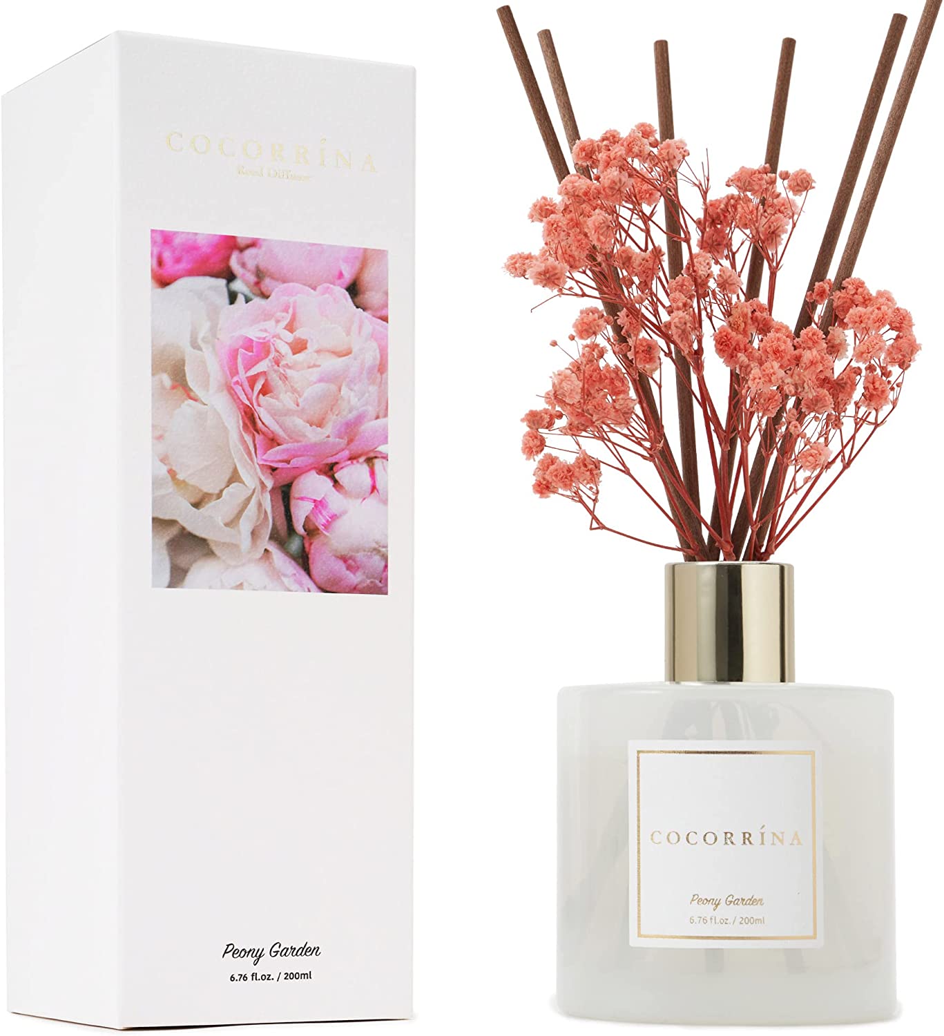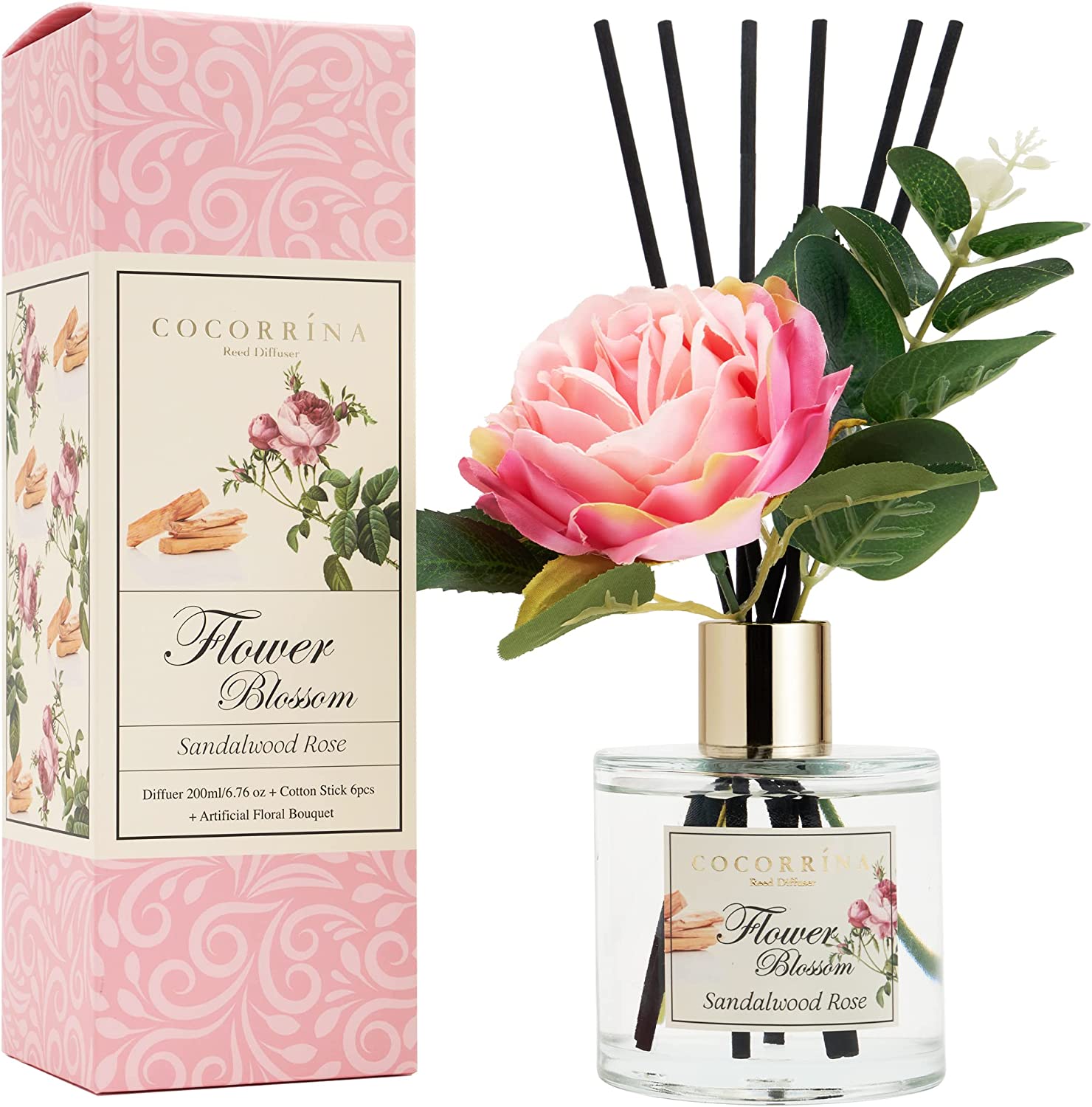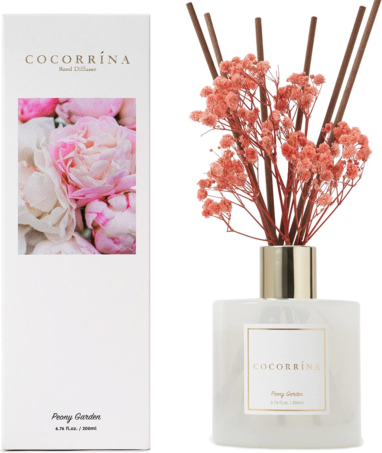 • Includes: One fragrance diffuser glass bottle, 6.7 fl oz mixture of essential oils combined with fragrance, one pc. of real preserved baby's breath flowers, and six pure cotton sticks. Adjust the amount of aroma released by adding or removing the sticks.