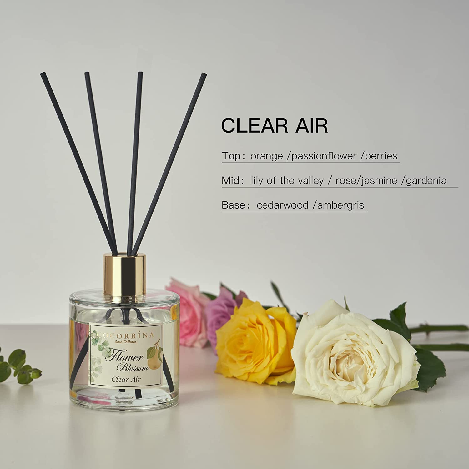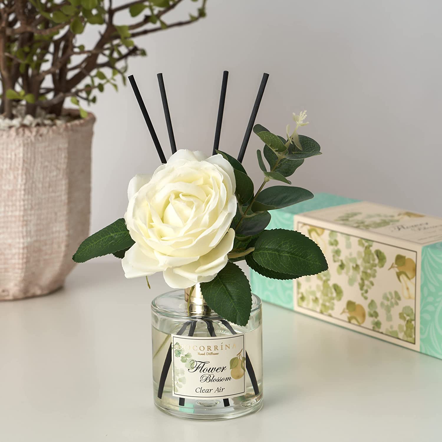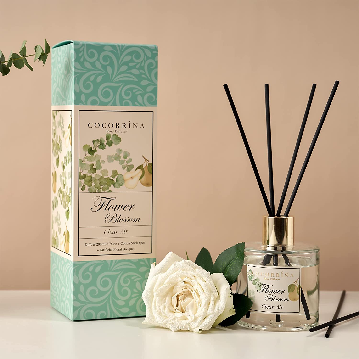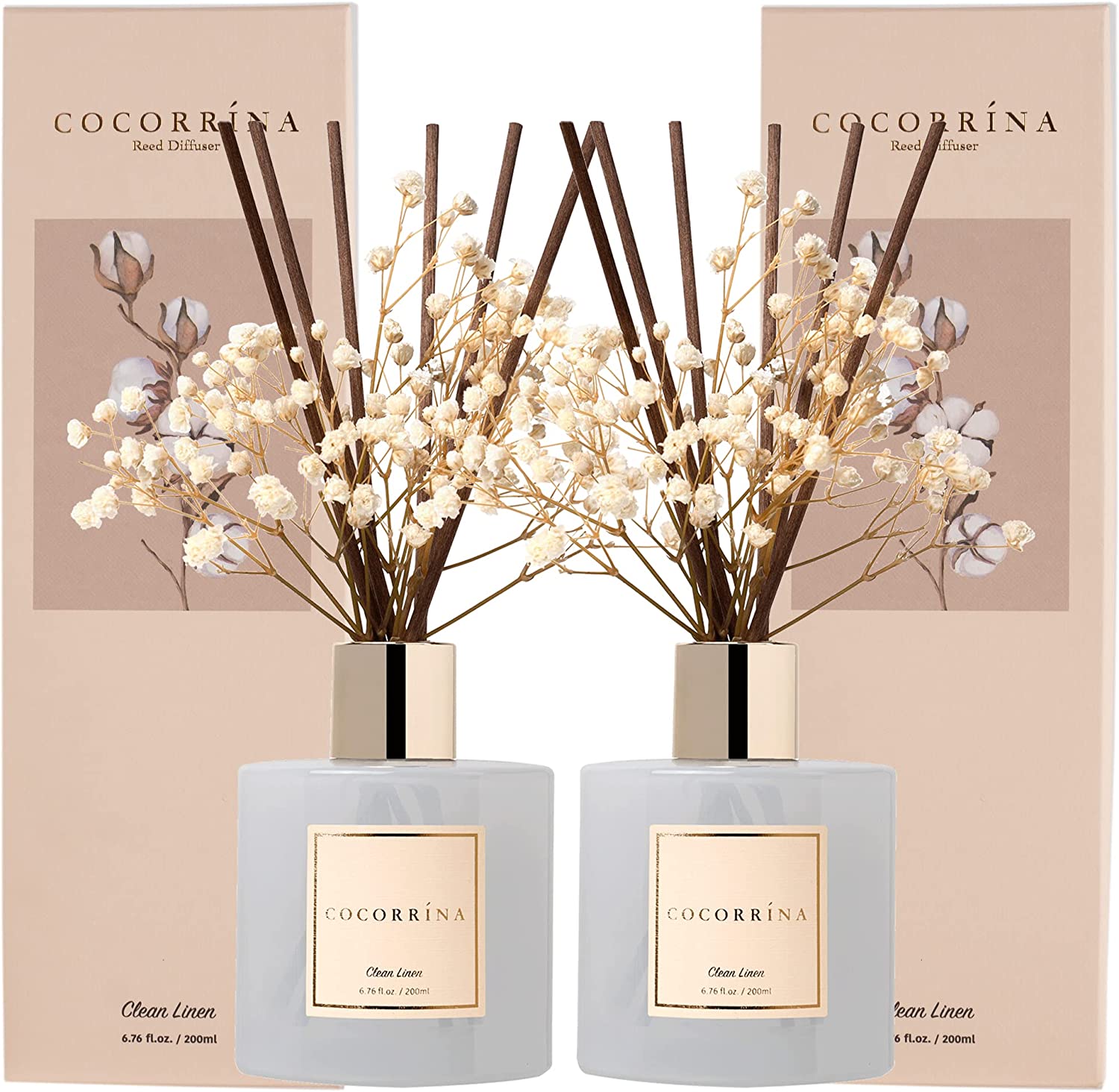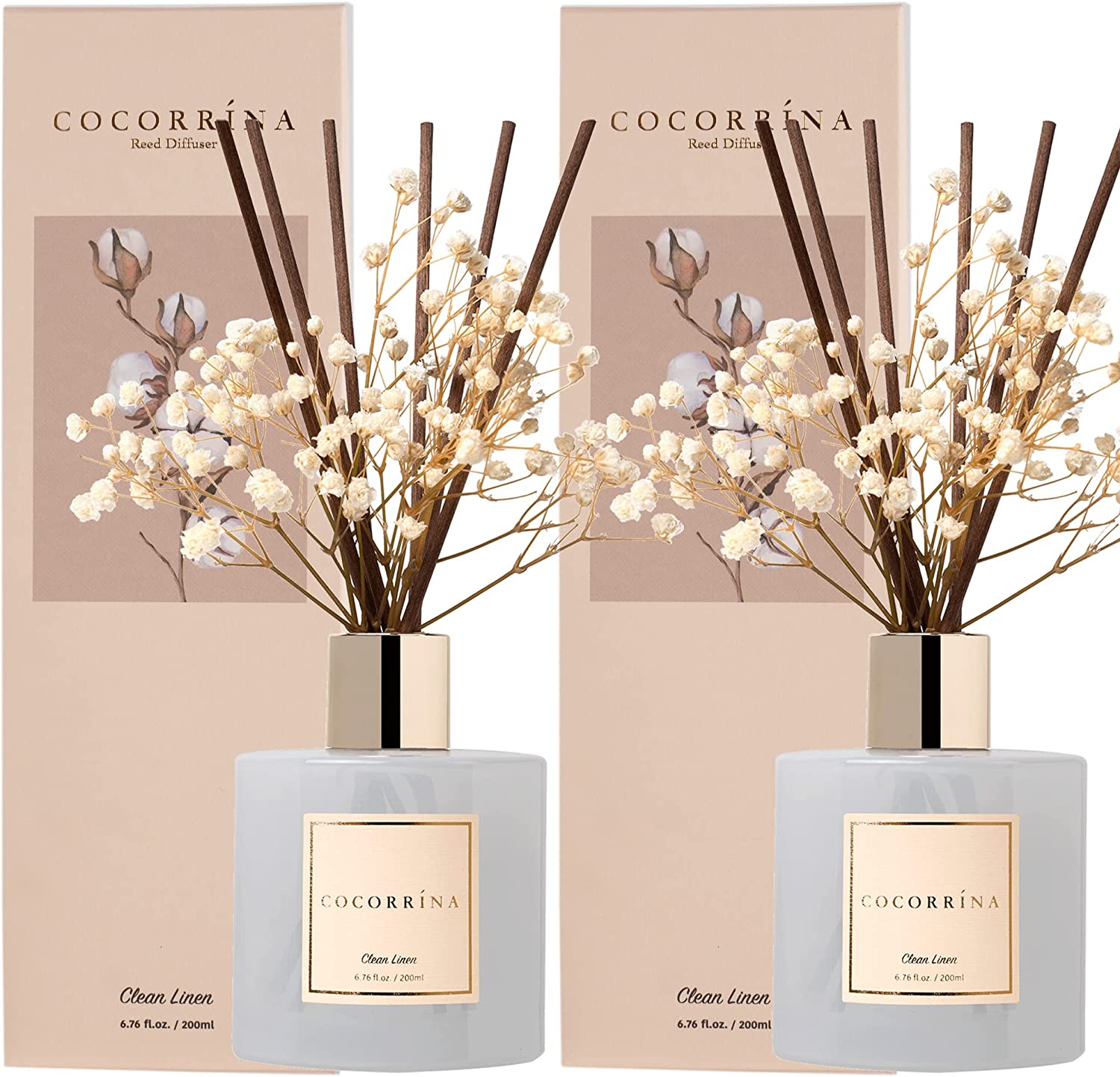 Cocorrína Reed Diffuser Set, 6.7 oz Clean Linen Scented Diffuser with Sticks Home Fragrance Essential Oil Reed Diffuser for Bathroom Shelf Decor