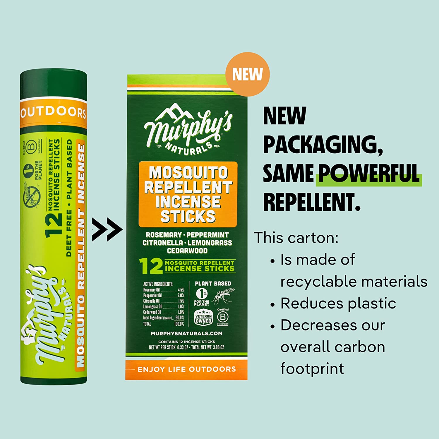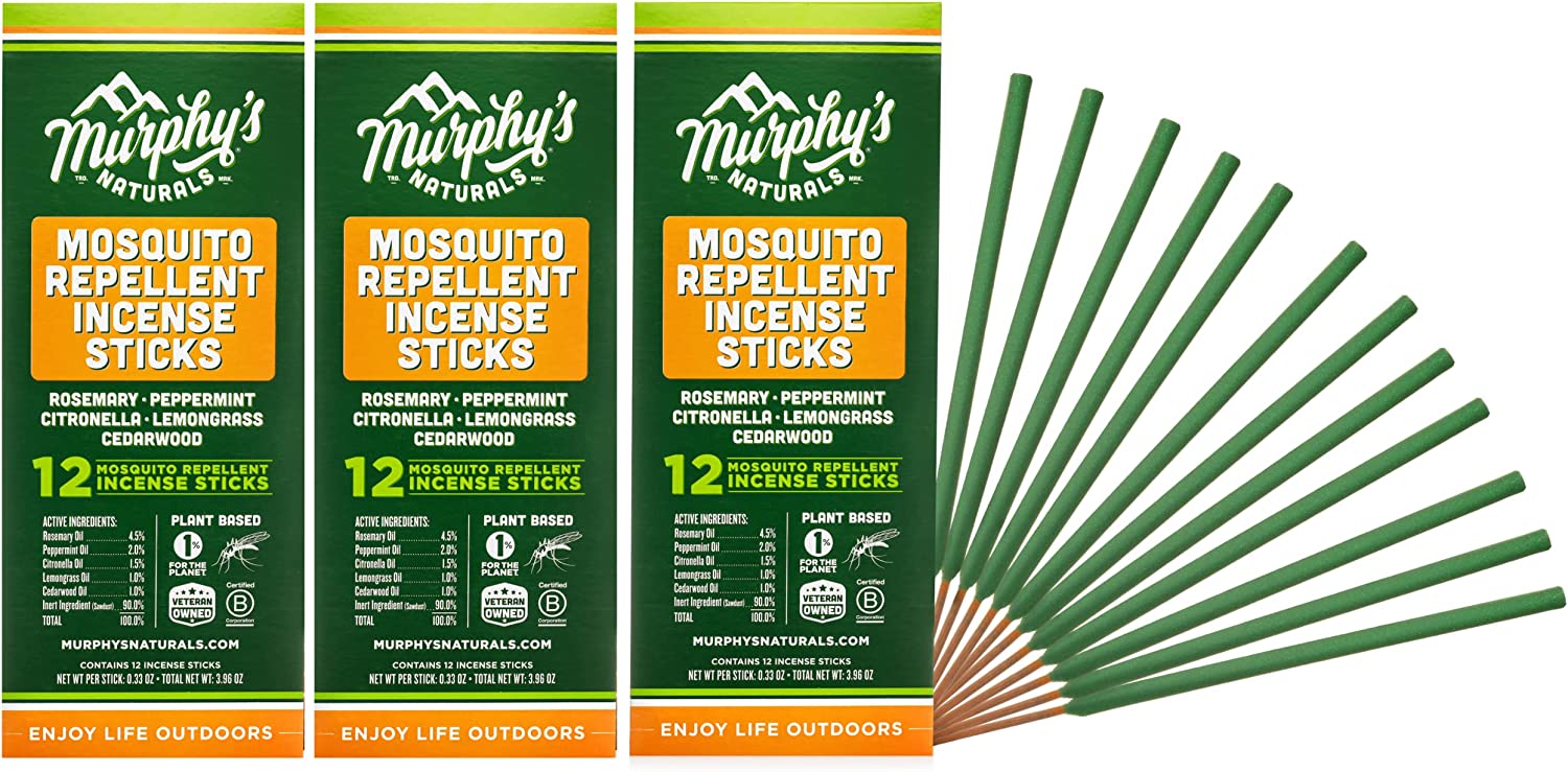Murphy's Naturals Mosquito Repellent Incense Sticks | DEET Free with Plant Based Essential Oils | 2.5 Hour Protection | 12 Sticks per Tube | 3 Pack
