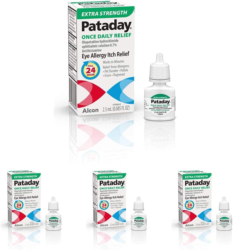 Get fast eye allergy itch relief with Pataday Once Daily Relief Extra Strength, the first and only full 24-hour eye allergy itch relief drop available without a prescription. A single drop of Pataday Once Daily Relief Extra Strength features the ingredient doctors prescribed most for eye allergy itch relief caused by pollen, ragweed, grass, animal hair and dander. Pataday Once Daily Relief Extra Strength is applied directly to the eye to reduce itchy allergy symptoms fast by working directly on the cells that make eyes itch for a full 24-hours.