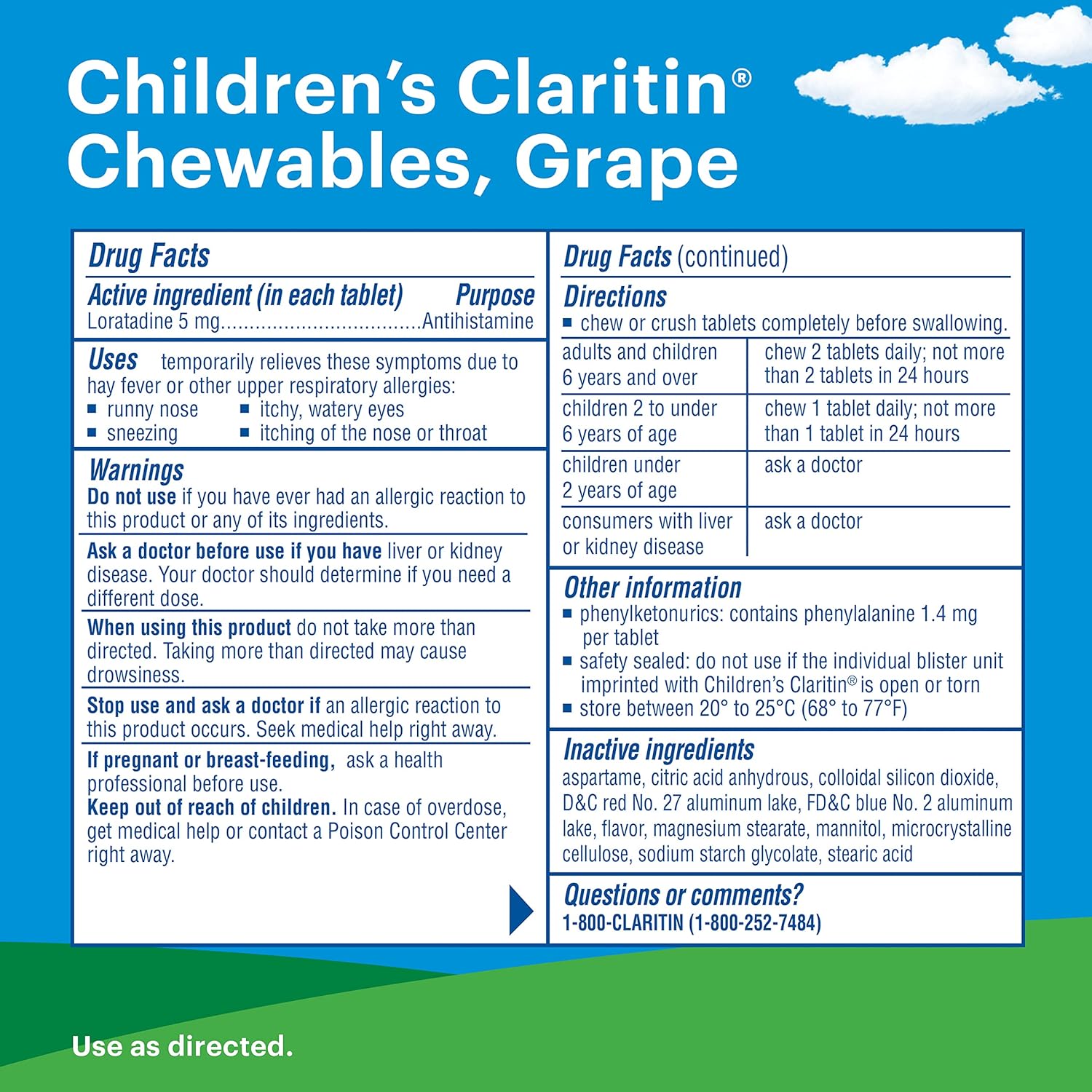 Children's Claritin Chewables - the perfect tablet solution for kids who need fast-acting and non-drowsy allergy relief. These chewable tablets are specially designed to provide 24-hour allergy relief from symptoms such as sneezing, runny nose, itchy and watery eyes, and itchy throat. Children's Claritin Chewables contain loratadine, a powerful antihistamine that helps to block the histamines that your child's body produces in response to allergens. This helps to reduce their allergy symptoms and provide them with the allergy relief they need to get through their day. Unlike other allergy medicines that can cause drowsiness, Children's Claritin Chewables are non-drowsy, so your child can take these tablets at any time of day and carry on with their normal activities. Plus, the chewable grape-flavored tablets make taking their medicine a little more fun for your child. Children's Claritin Chewables are designed for kids aged 2 years and older, making them a convenient option for parents who want to provide their child with effective allergy relief. With just one tablet per day, your child can experience 24 hours of allergy relief and get back to doing the things they love.