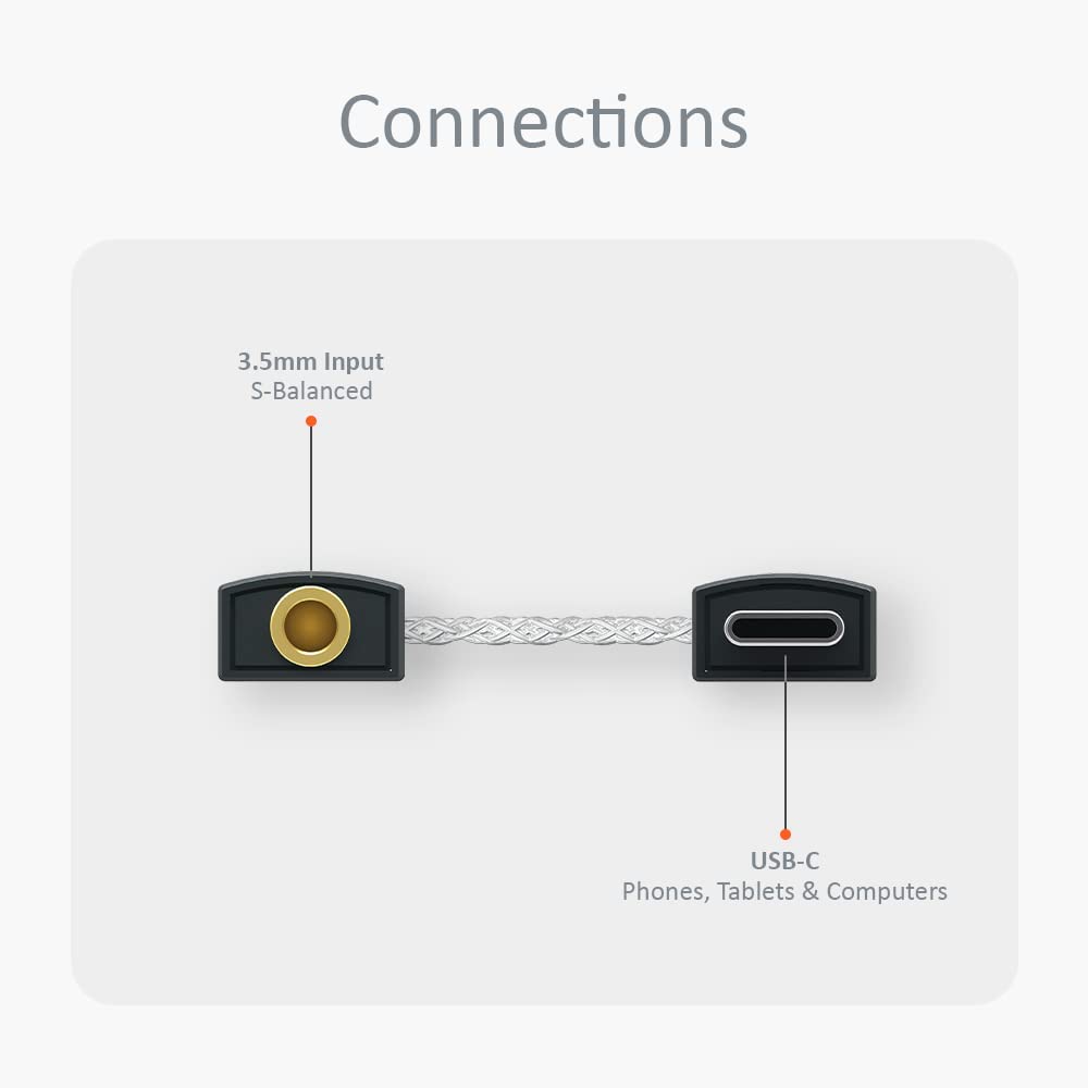 • CONNECTIONS - USB-C Input to 3.5mm Headphone Jack