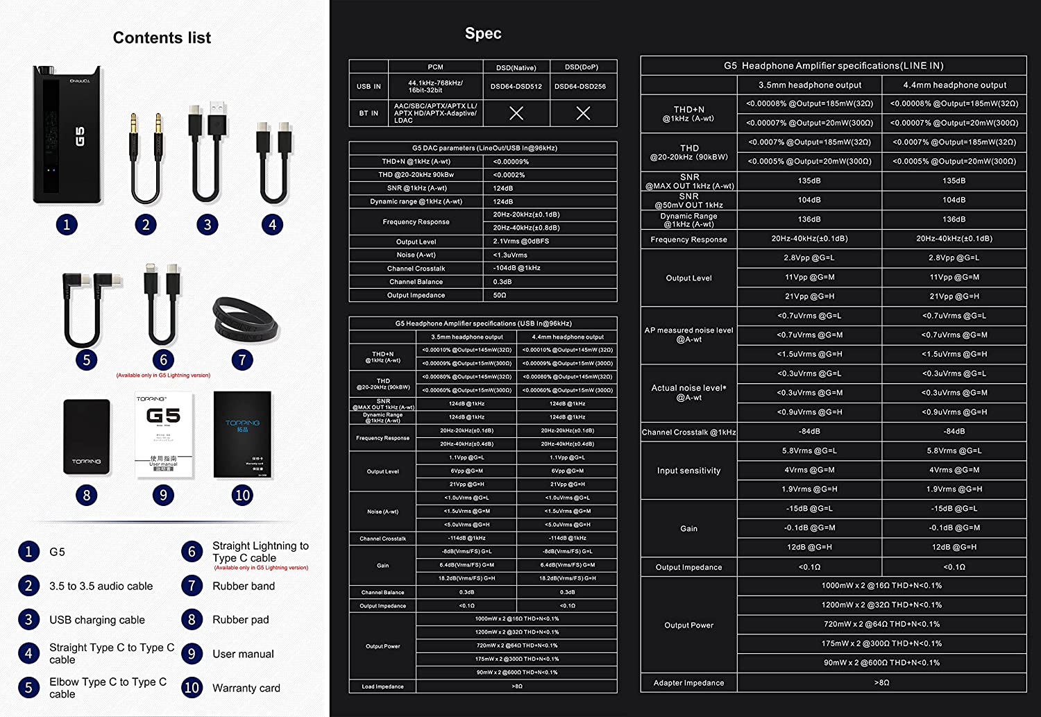• 👍 Suitable for almost all kinds of headphones ▶️G5 provides 3 step gain settings, so that high-sensitivity or low-sensitivity headphones can obtain a comfortable gain range; the output level as high as 21Vpp and the output power of 175mW under 300Ω load are enough to drive high impedance headphones; The <0.3uVrms ultra-low noise and <0.1Ω output impedance allow sensitive IEMs to perform satisfactorily.
