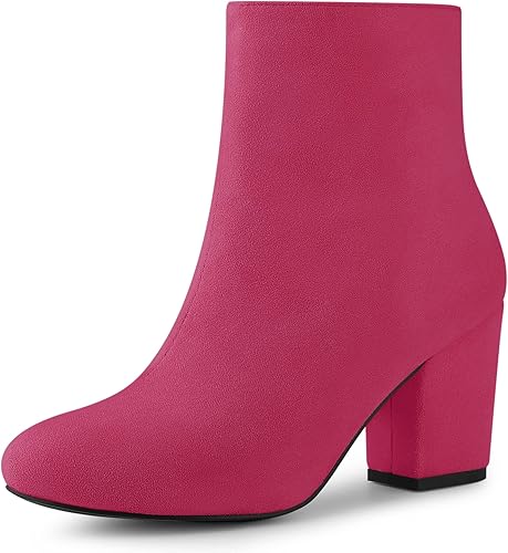 Allegra K Women's Round Toe Chunky Heel Ankle Boots