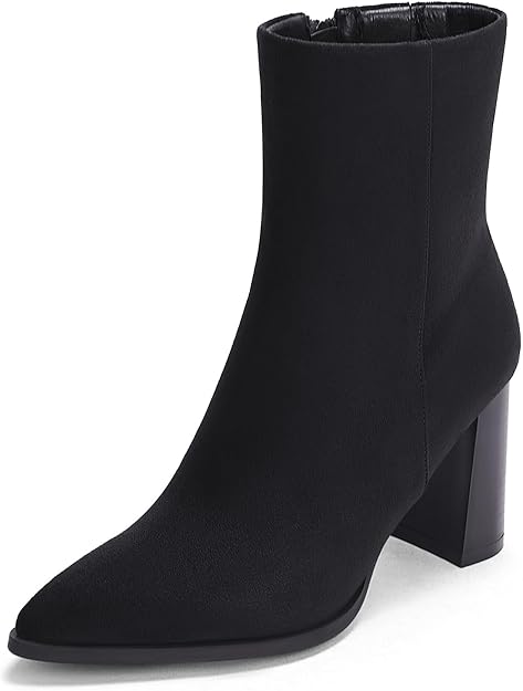 Coutgo Womens Ankle Boots Pointed Toe Chunky Stacked Heel Side Zipper Dress Fall Booties Shoes