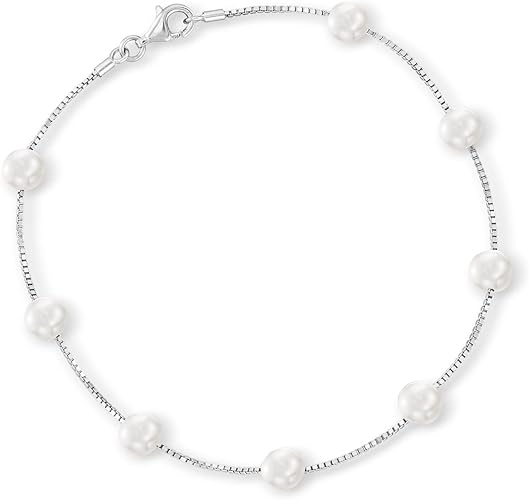 Ross-Simons 7-7.5mm Cultured Pearl Station Anklet in Sterling Silver. 10 inches